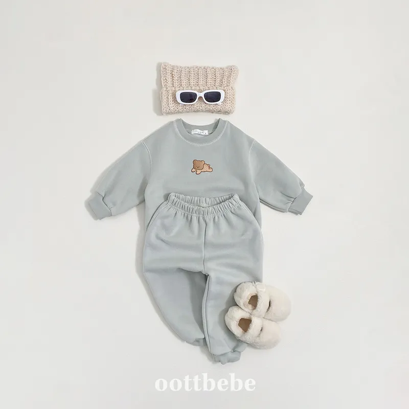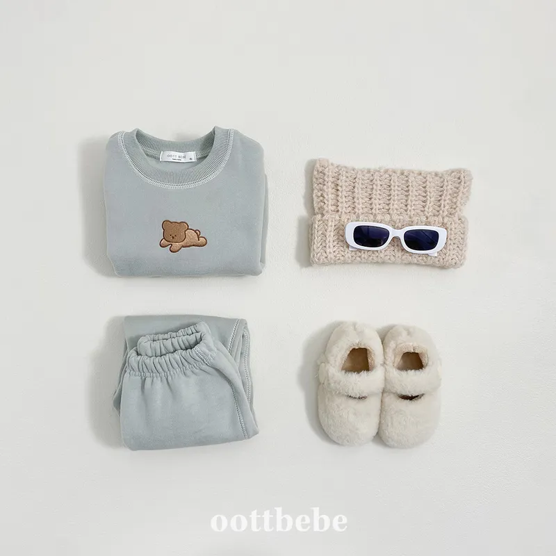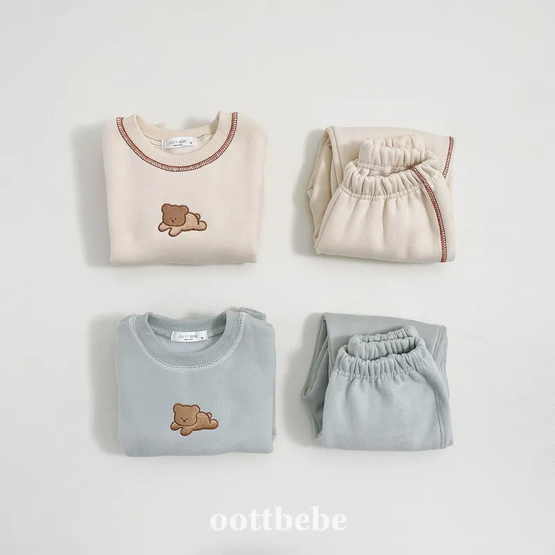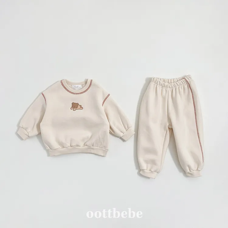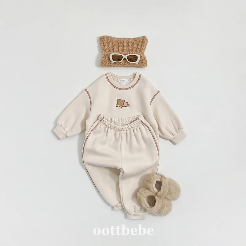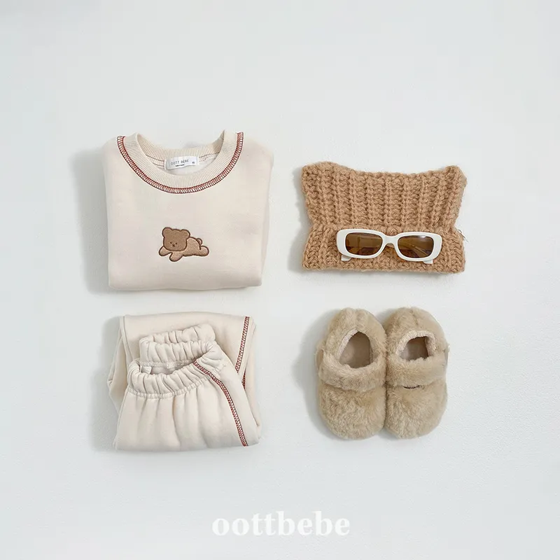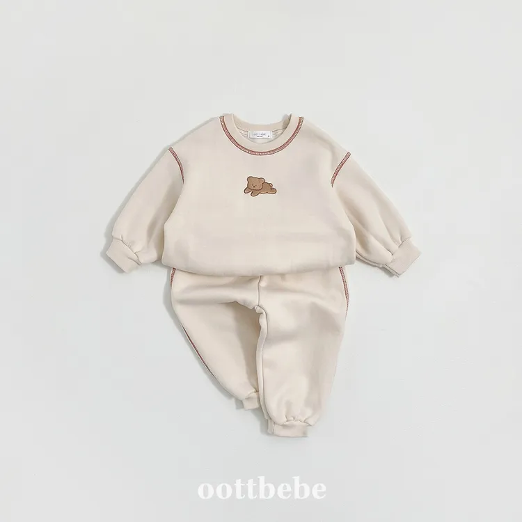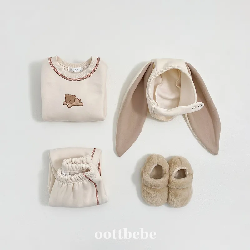 OOTT BEBE|拷克邊薄絨小熊棉質套裝組
