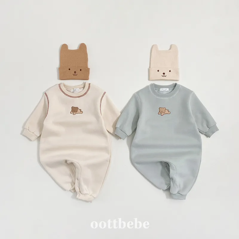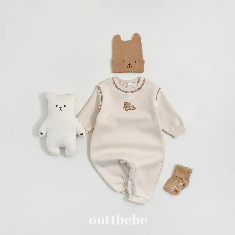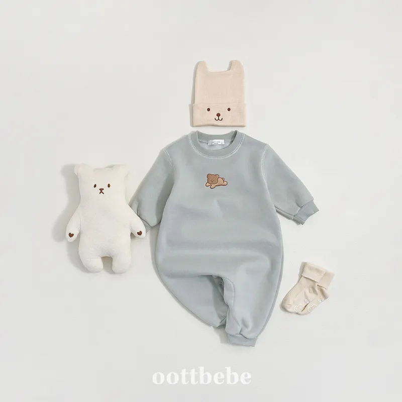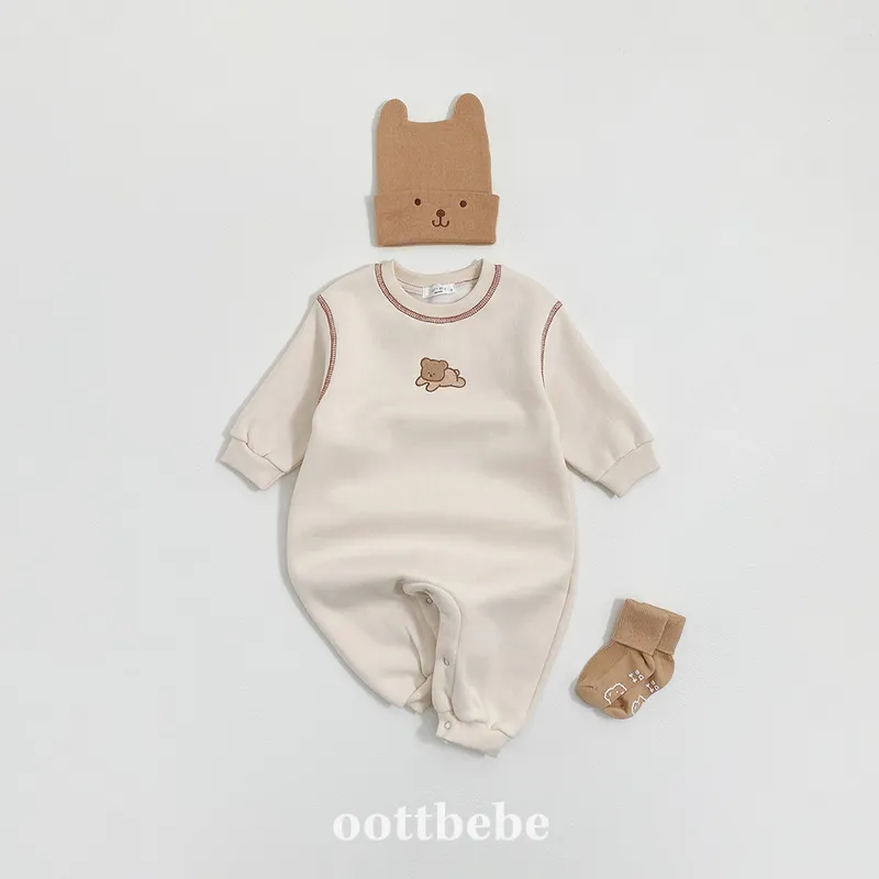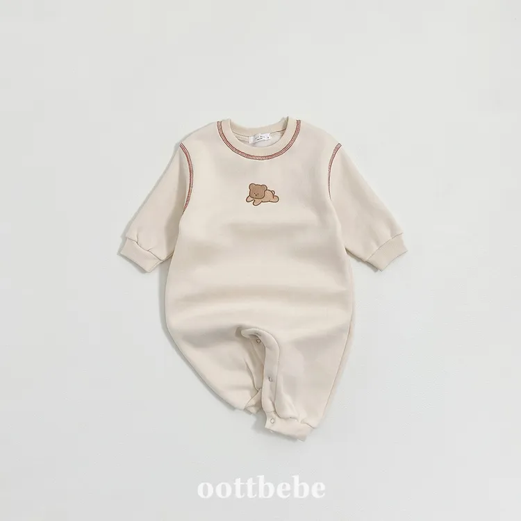 OOTT BEBE|BABY - 拷克邊薄絨小熊連身包屁