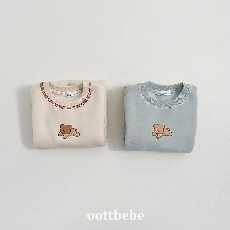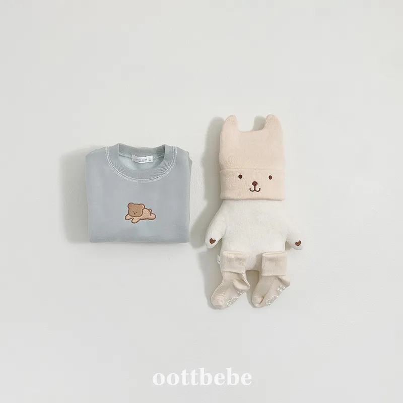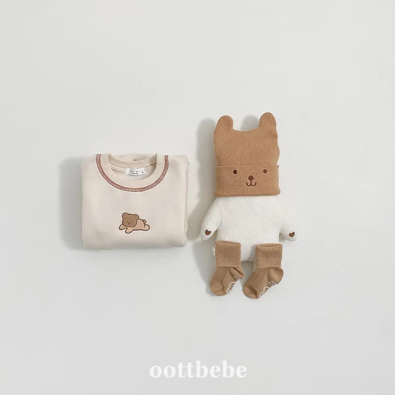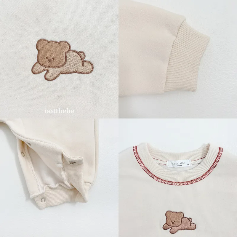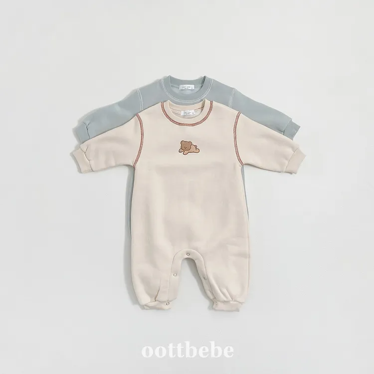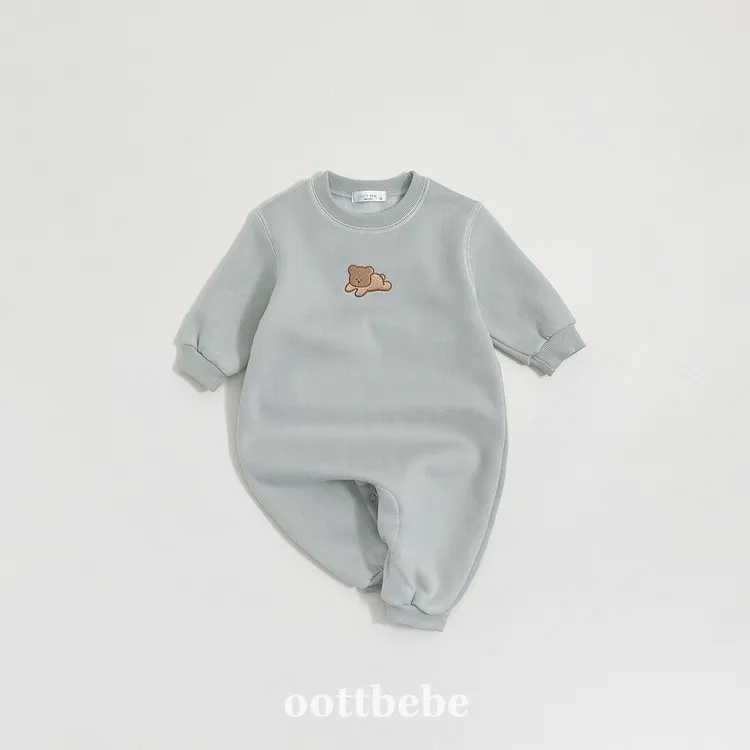 OOTT BEBE|BABY - 拷克邊薄絨小熊連身包屁