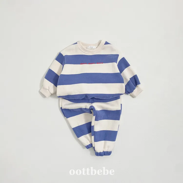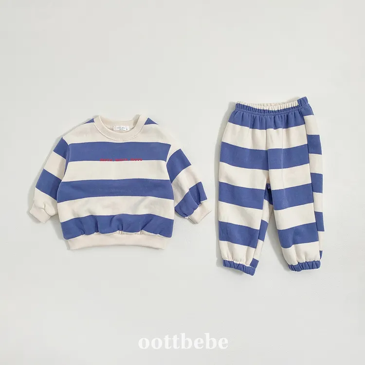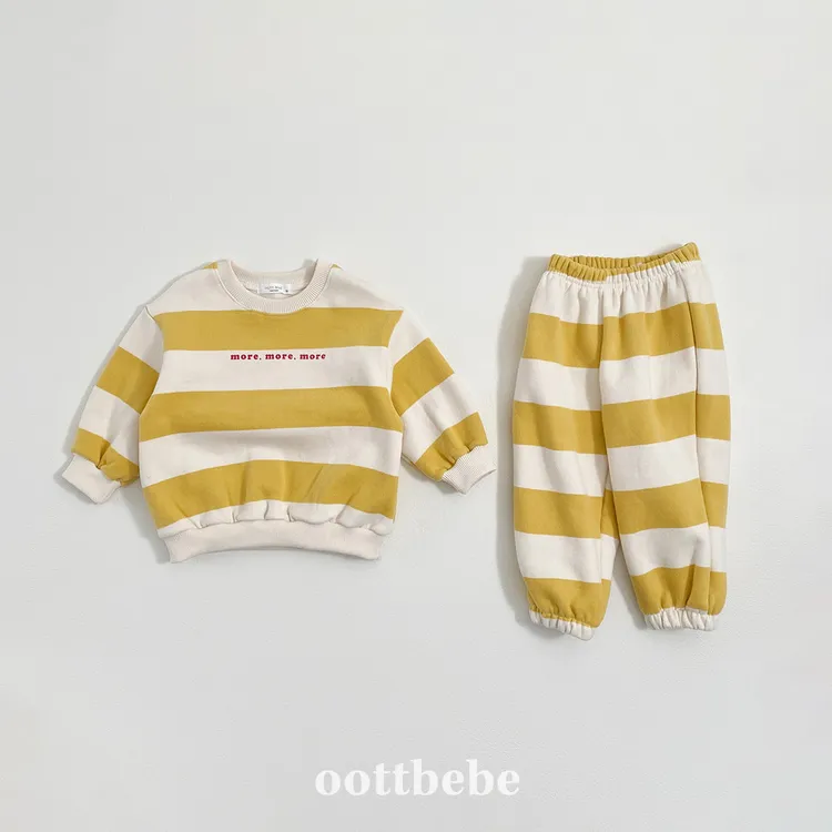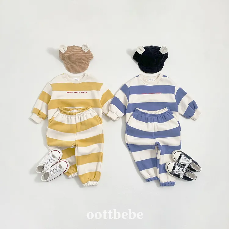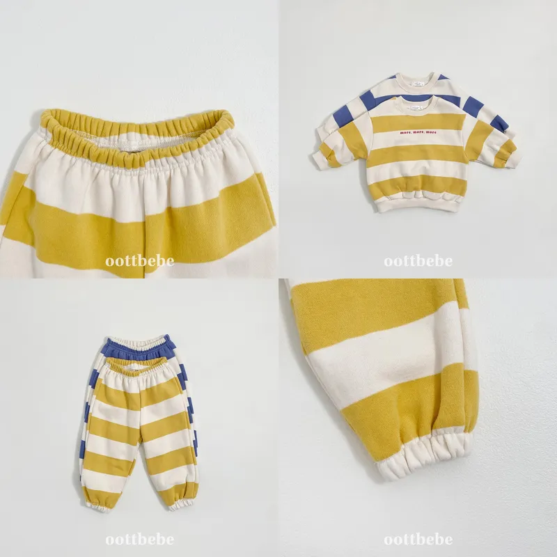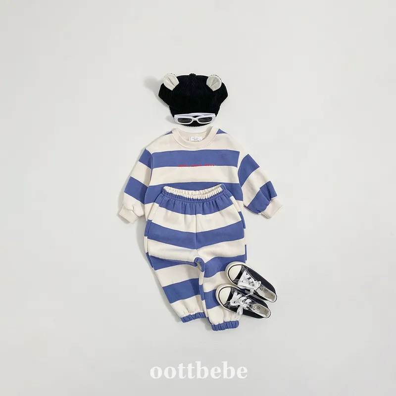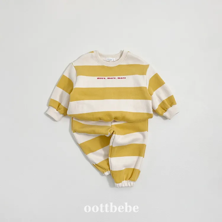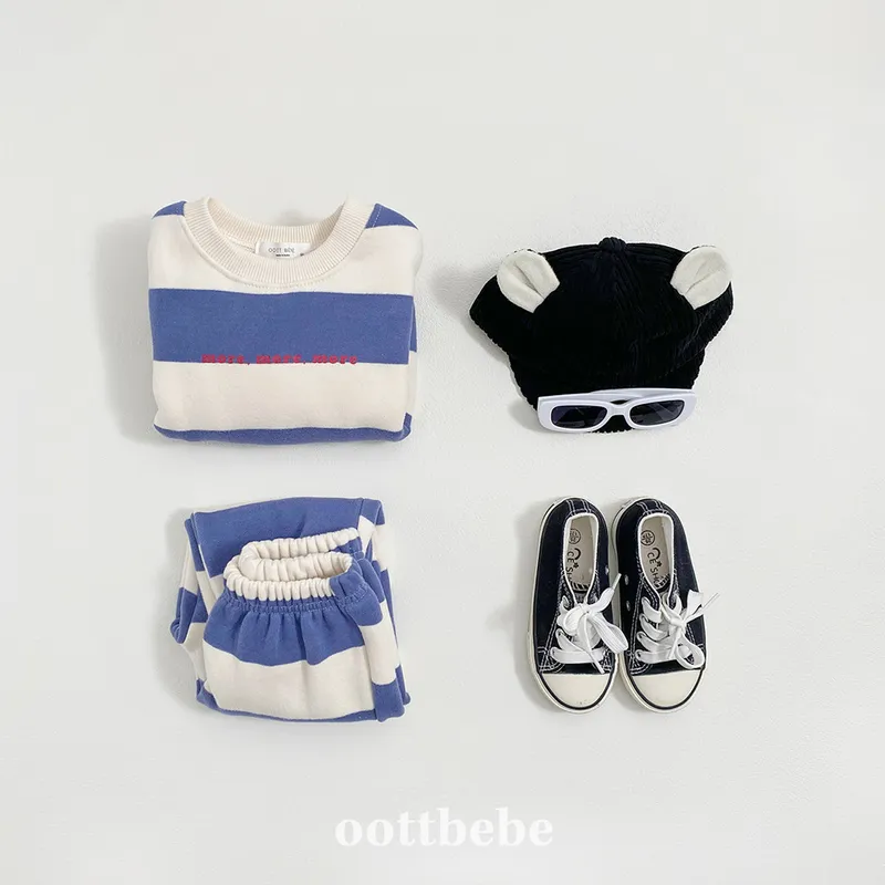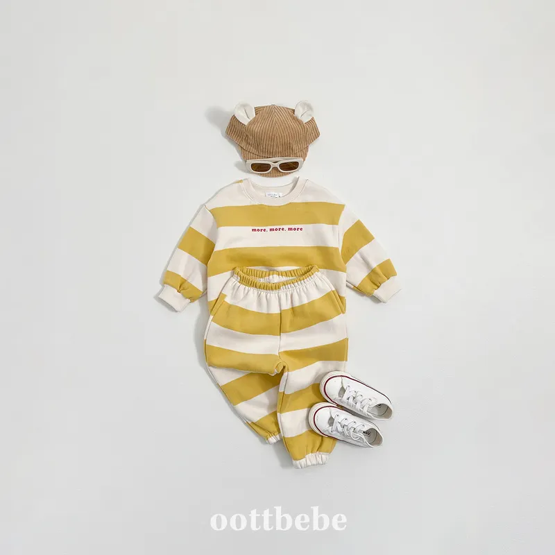 OOTT BEBE|粗條紋MORE小字棉質套裝組