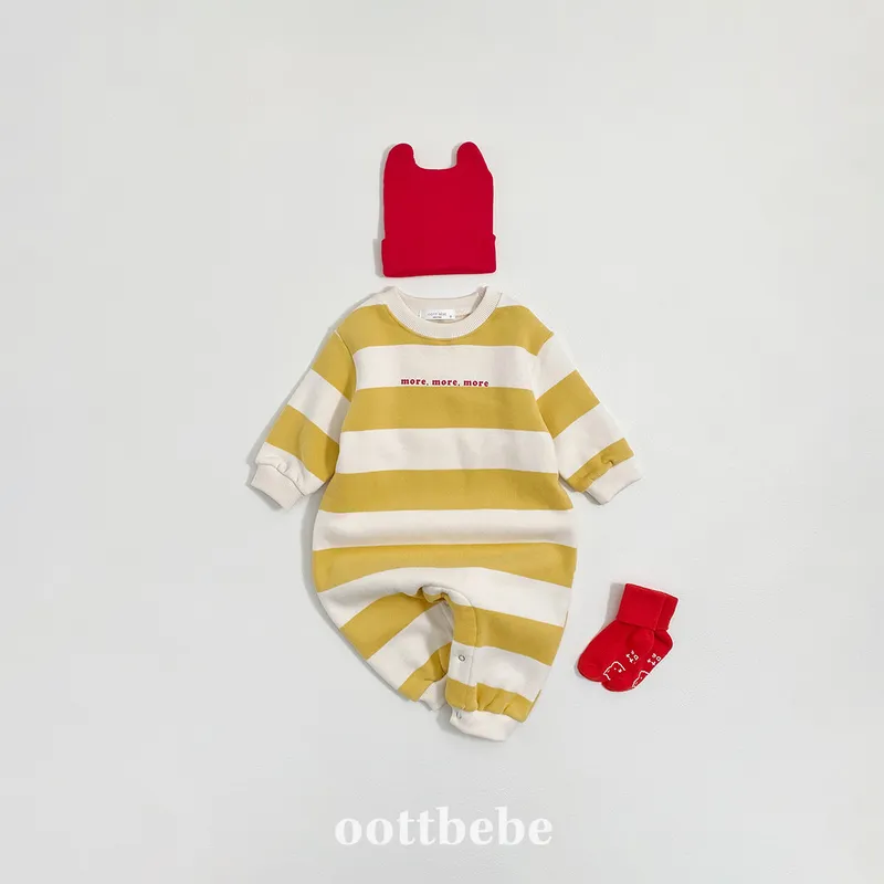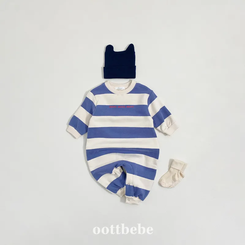OOTT BEBE|BABY - 粗條紋MORE小字連身包屁