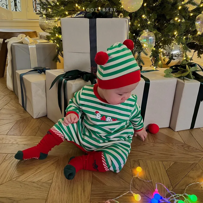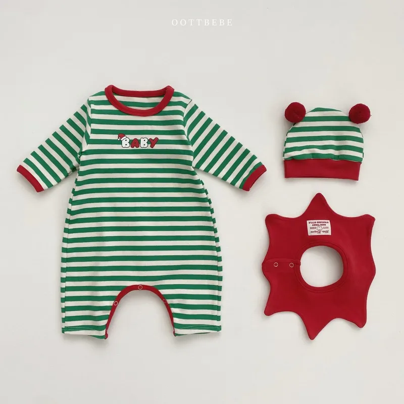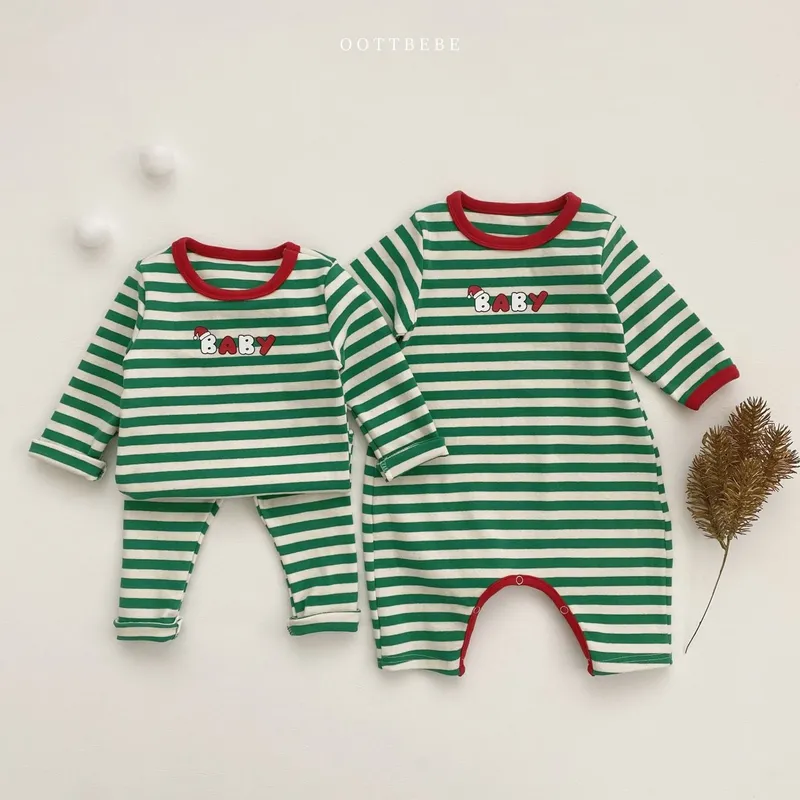 OOTT BEBE|BABY - 條紋撞色連身包屁衣