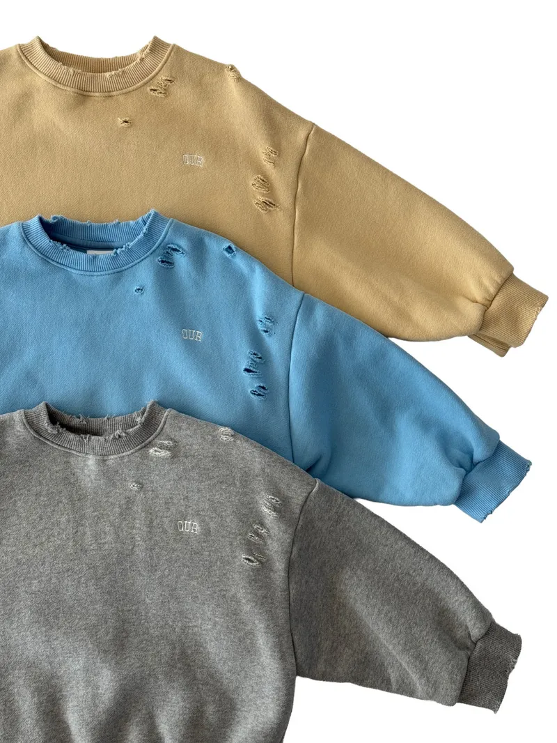 OUR|設計破洞小字標大學棉tee