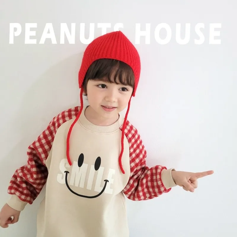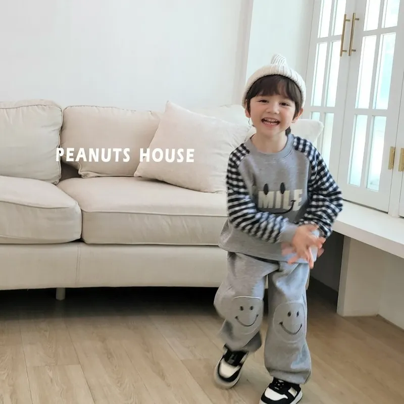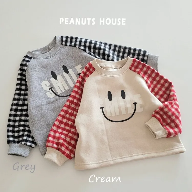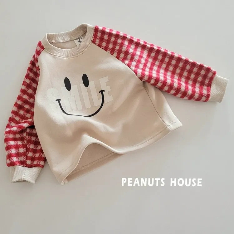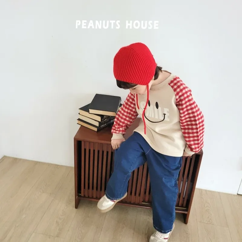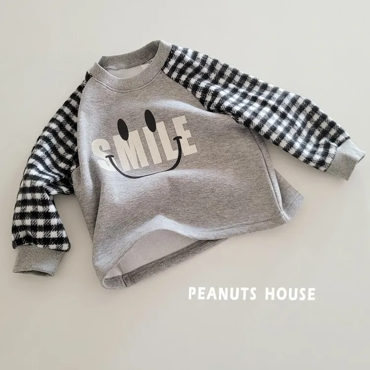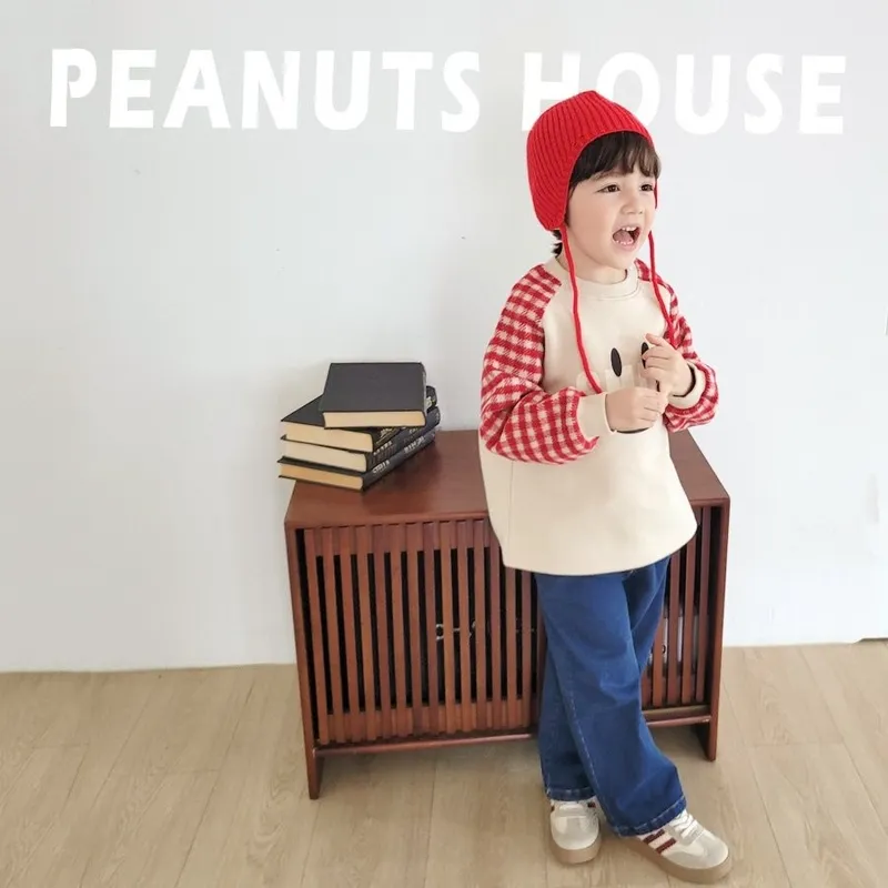PEANUTS|笑笑臉格紋綉寬鬆棉tee
