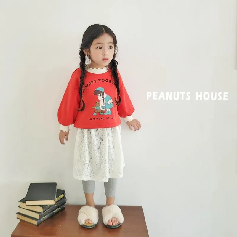 PEANUTS|女孩熊熊好朋友花邊棉tee