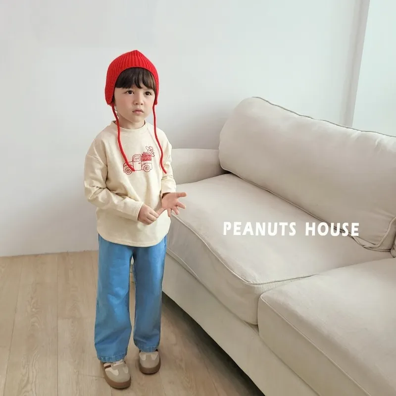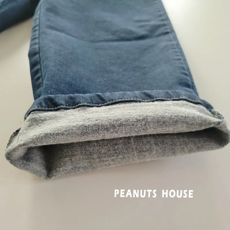 PEANUTS|厚布彈性寬版直筒牛仔褲