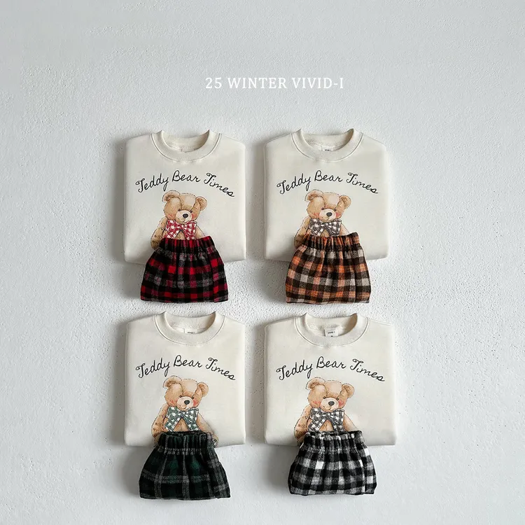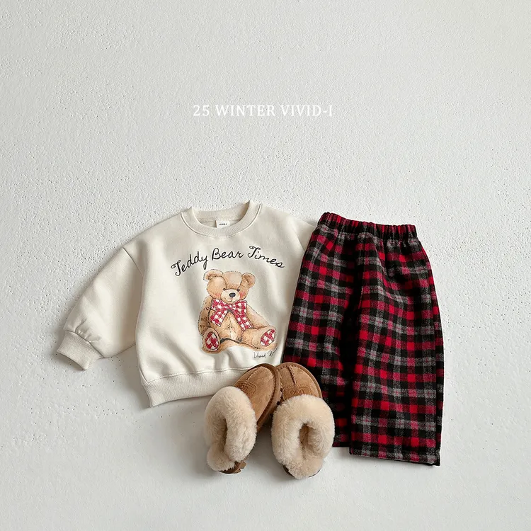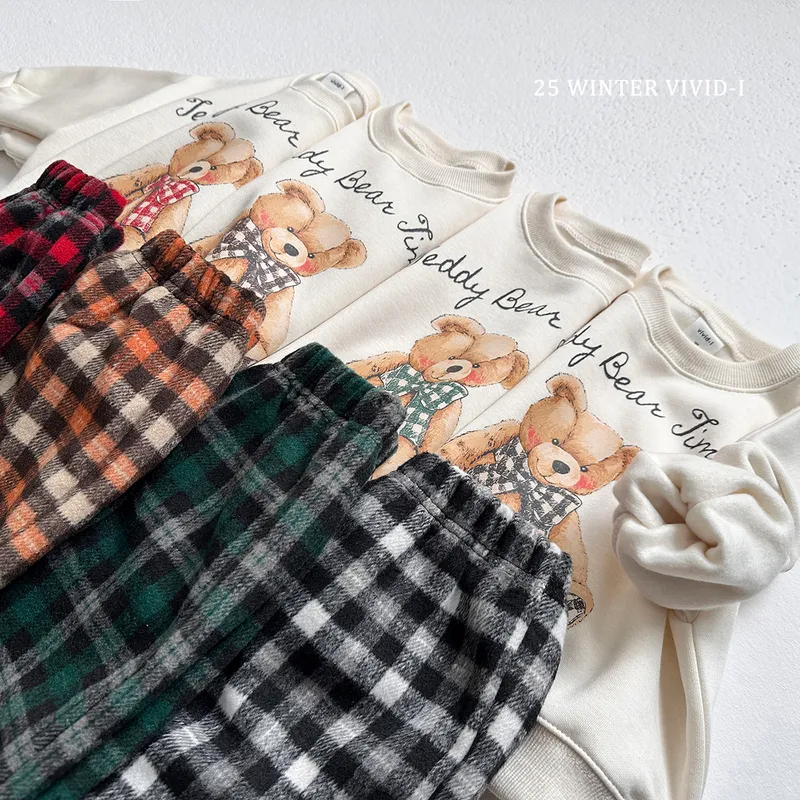 VIVID-I|泰迪熊格紋褲棉質套裝