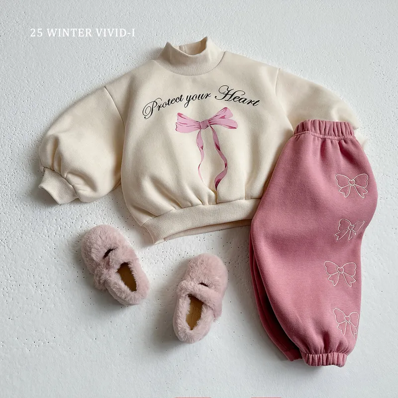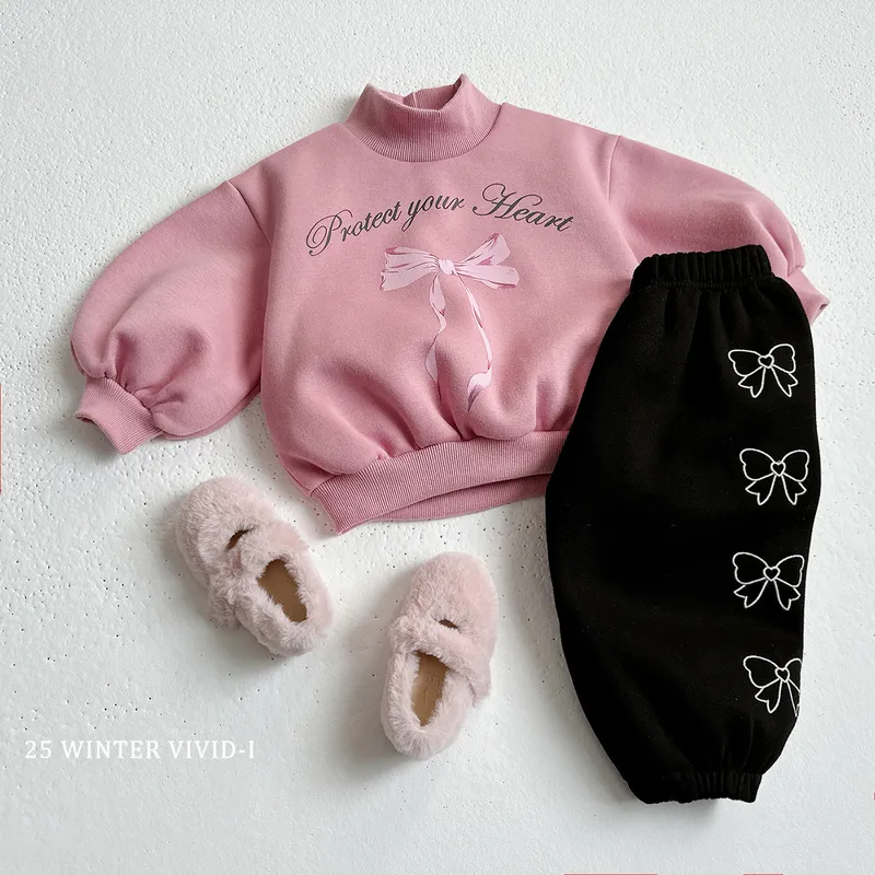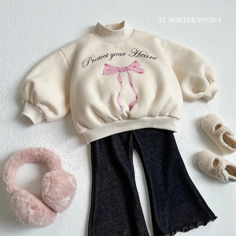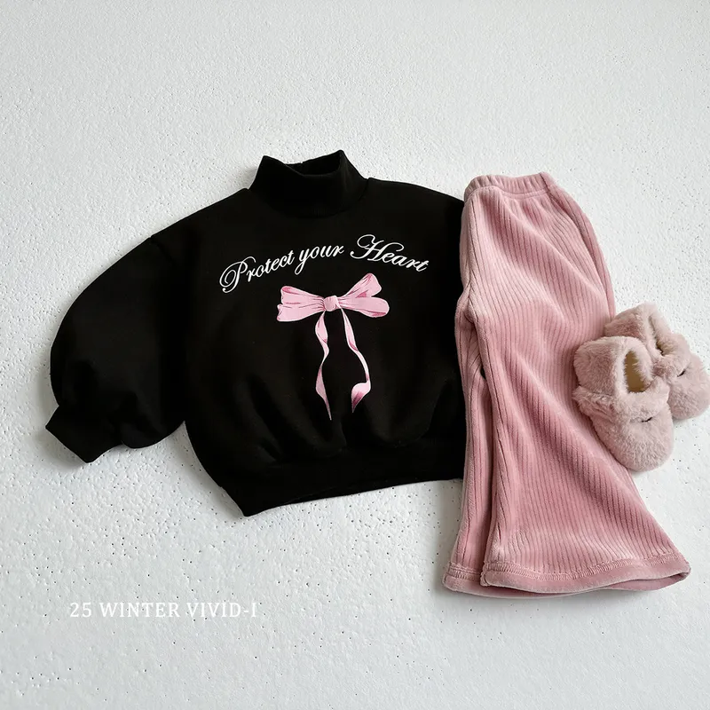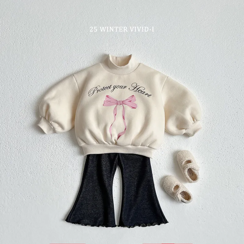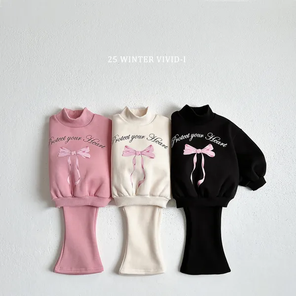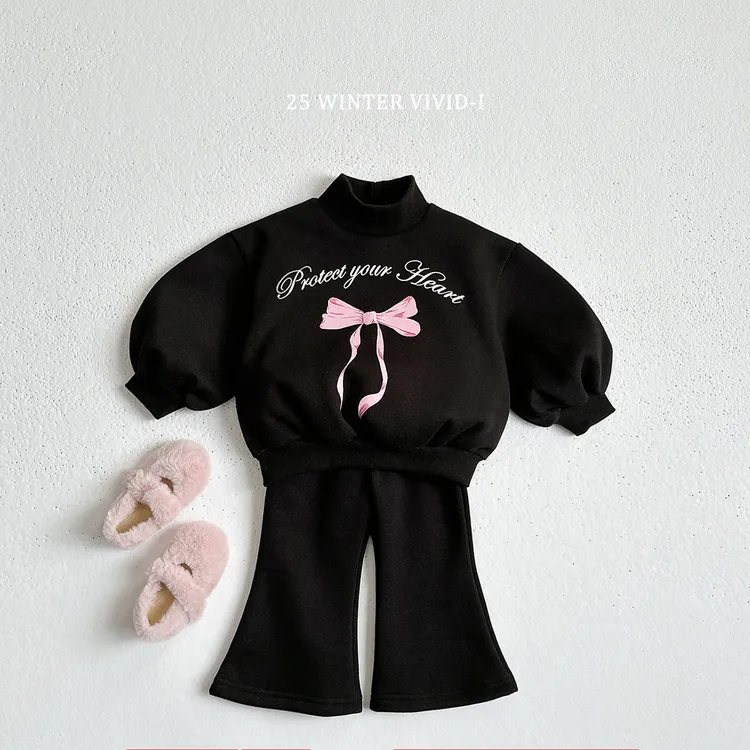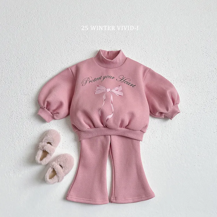 VIVID-I|緞帶中領上衣+喇叭褲棉質套裝