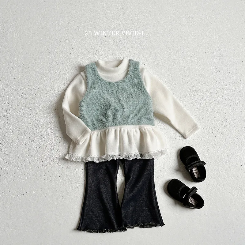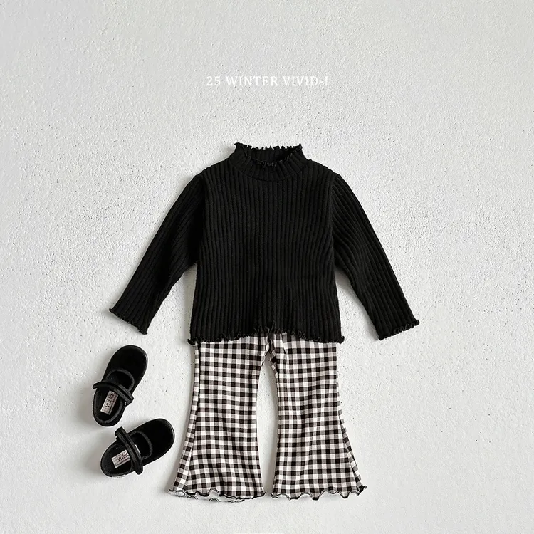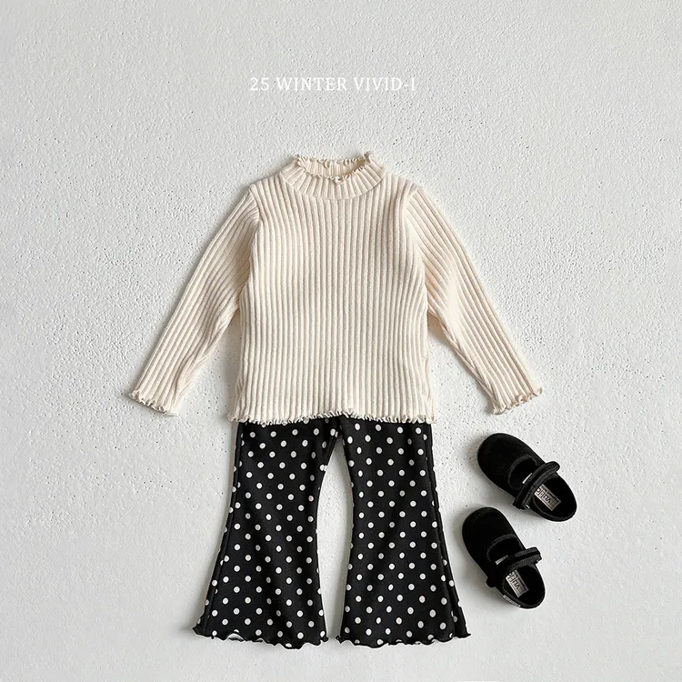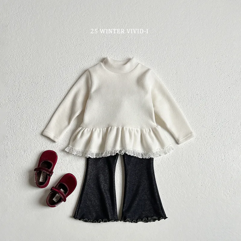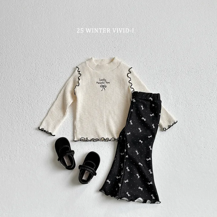 VIVID-I|抓絨印花花邊喇叭褲