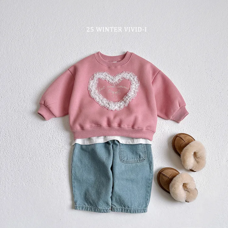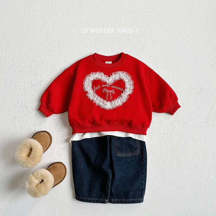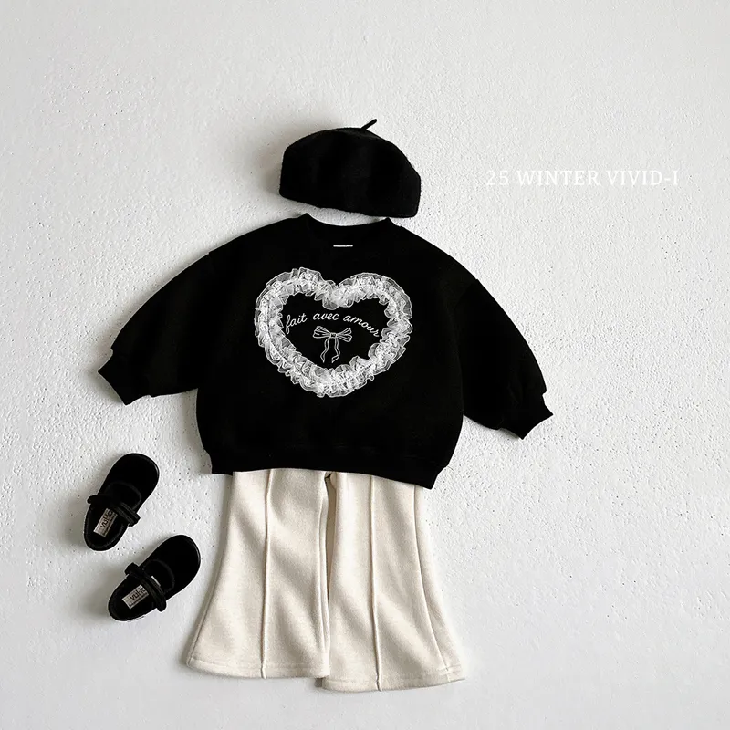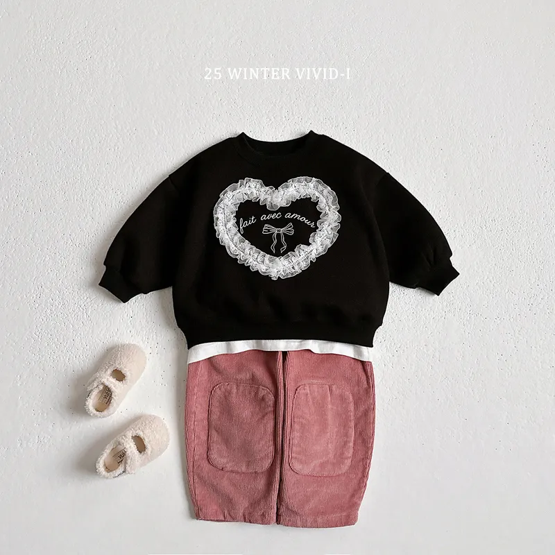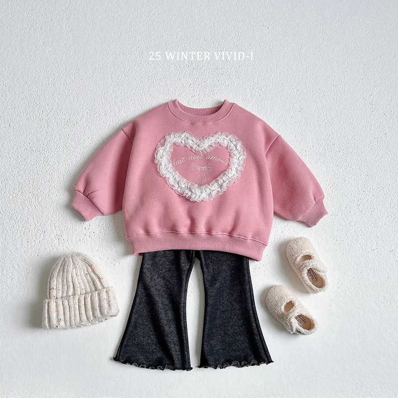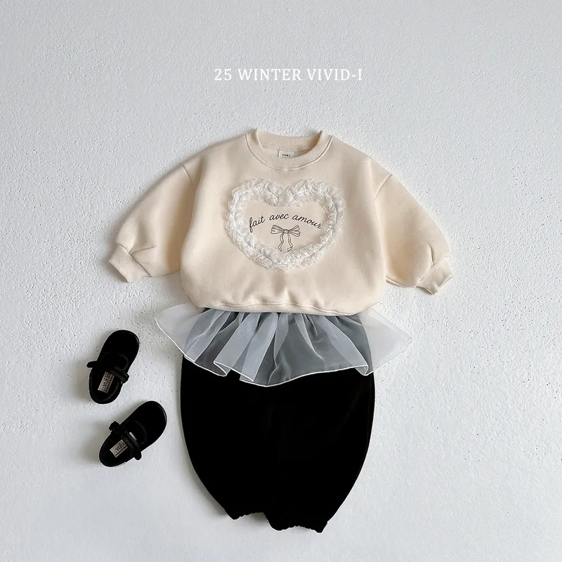 VIVID-I|緞帶蕾絲愛心抓絨棉tee
