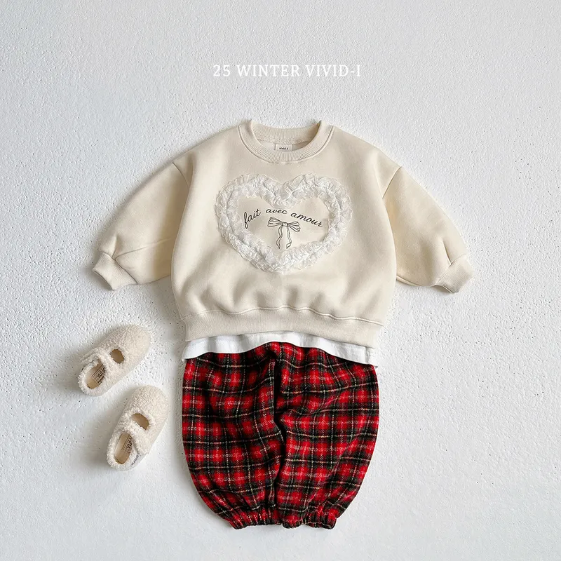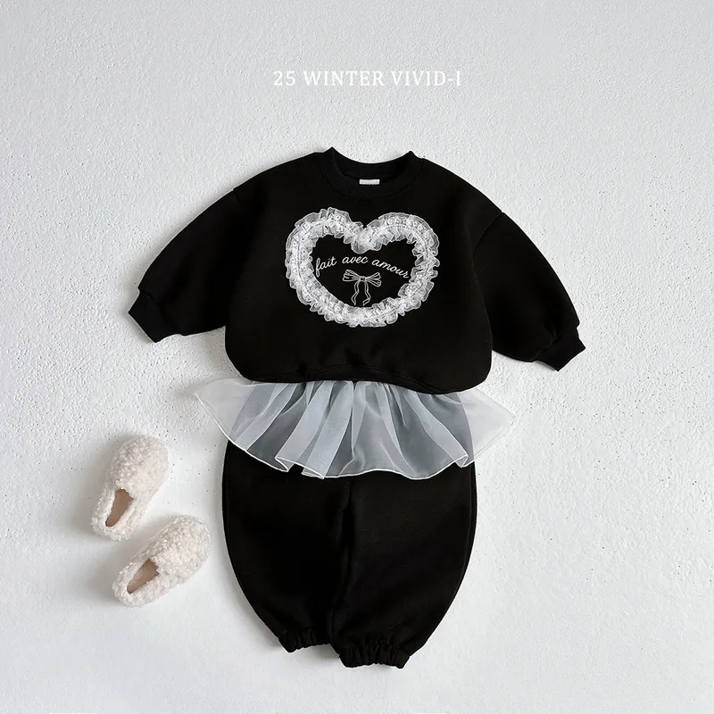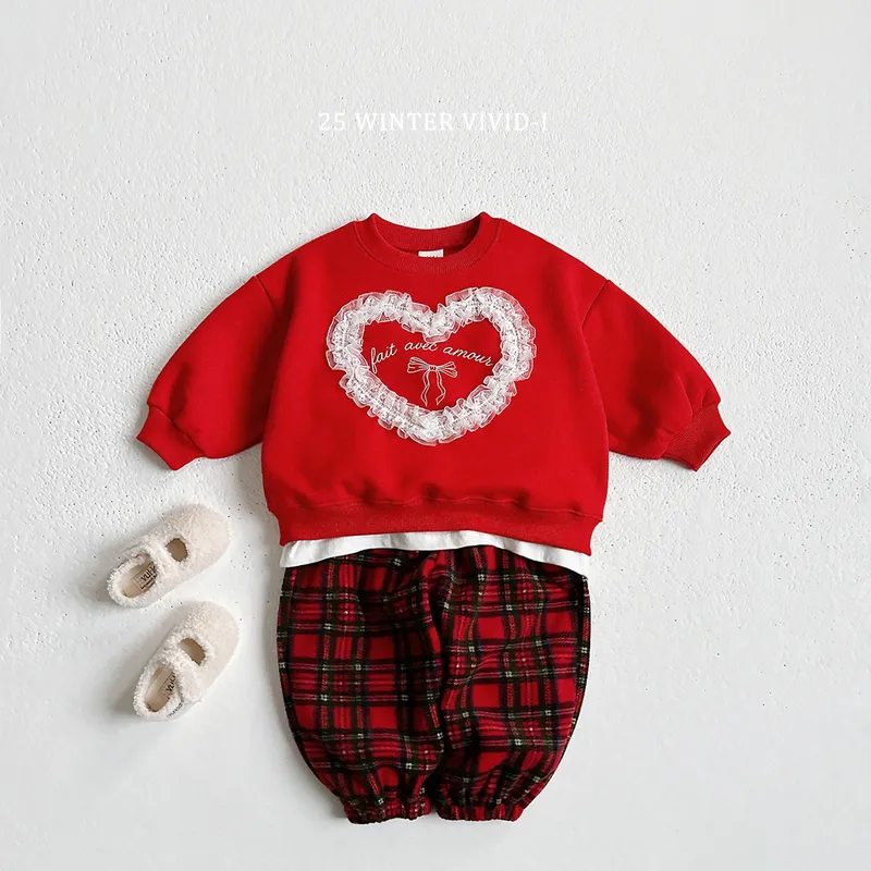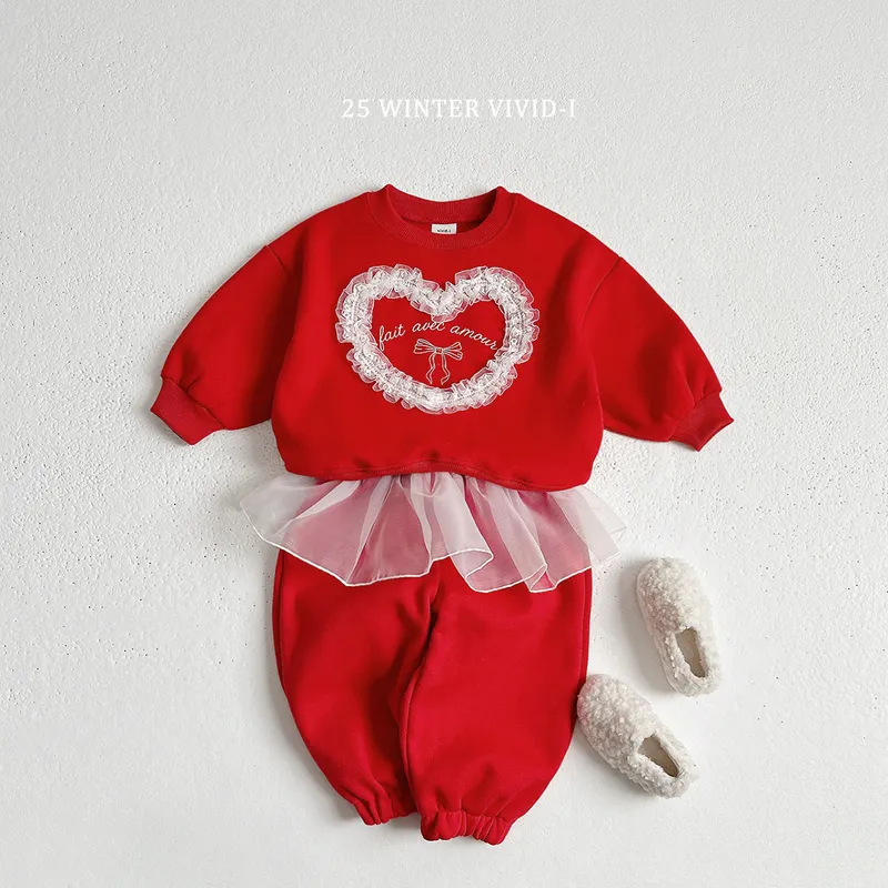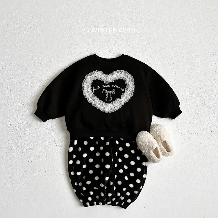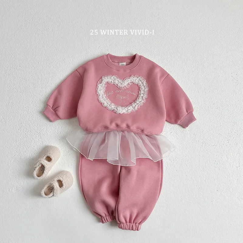 VIVID-I|緞帶蕾絲愛心抓絨棉tee