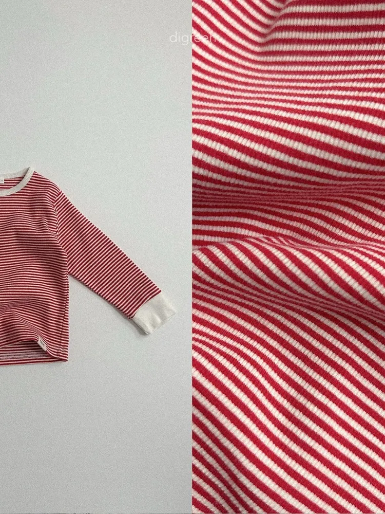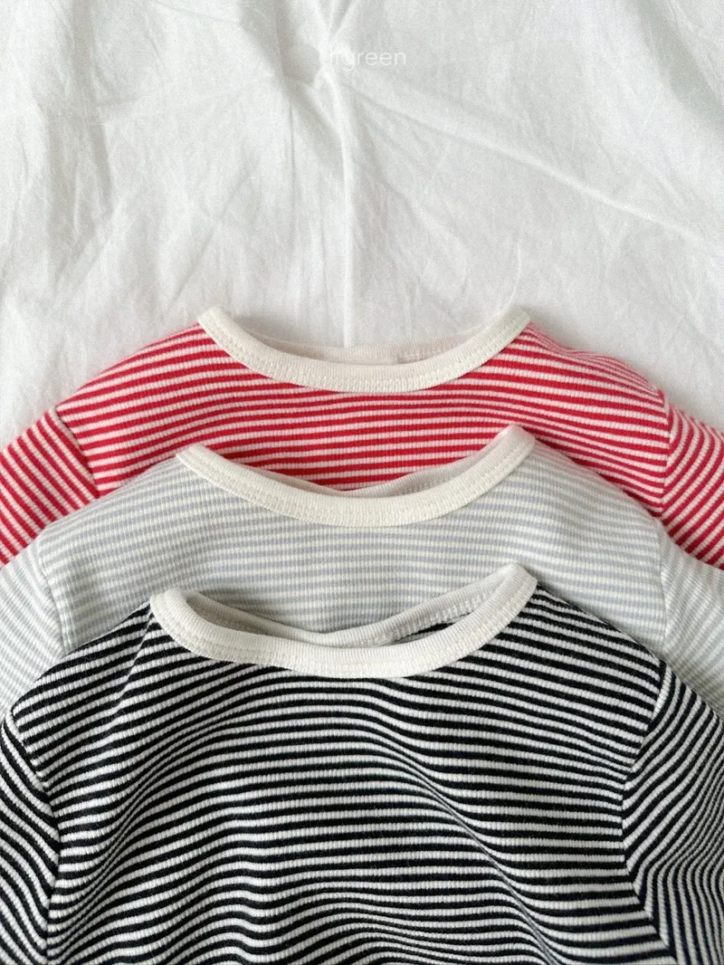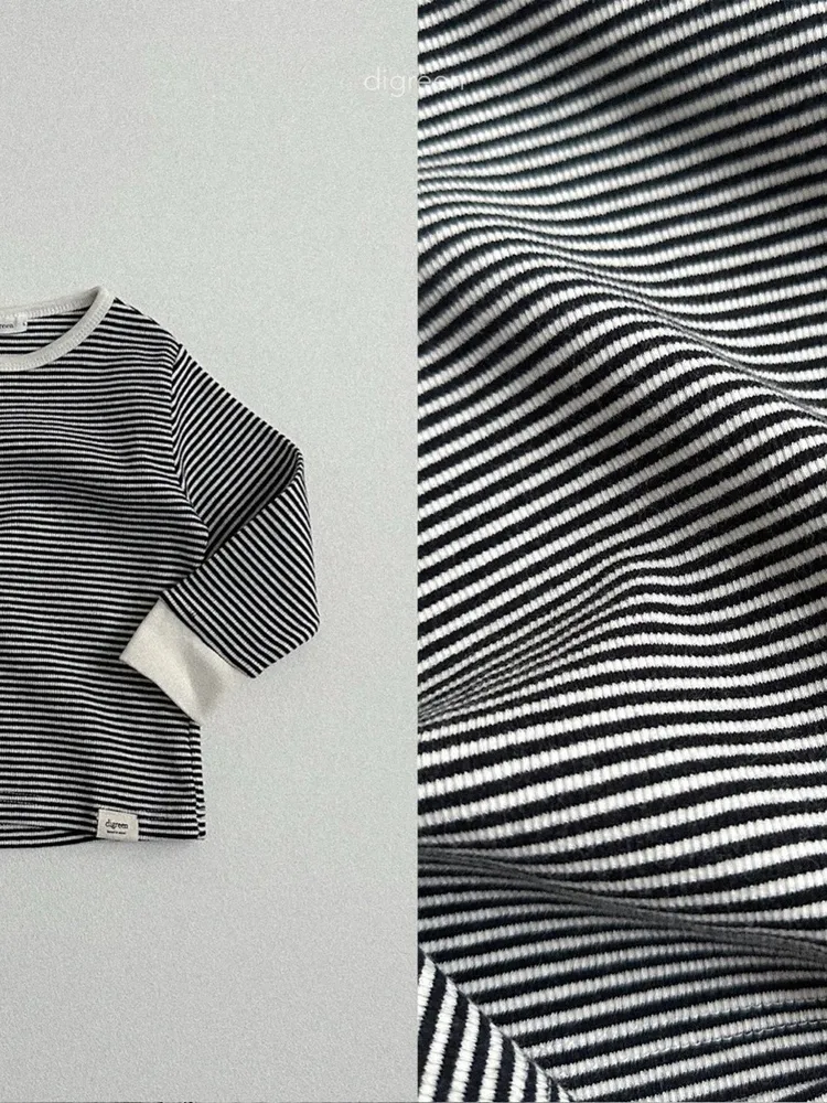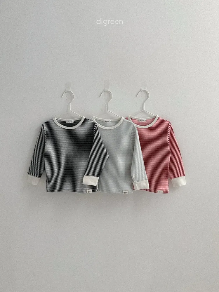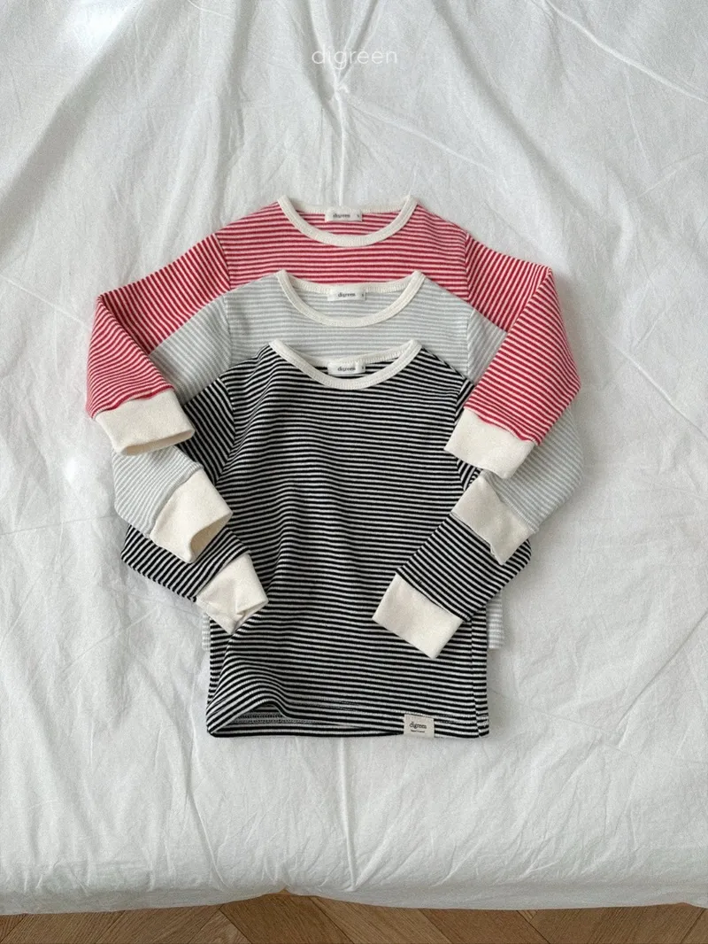 DIGREEN|小熊印花條紋長袖棉tee
