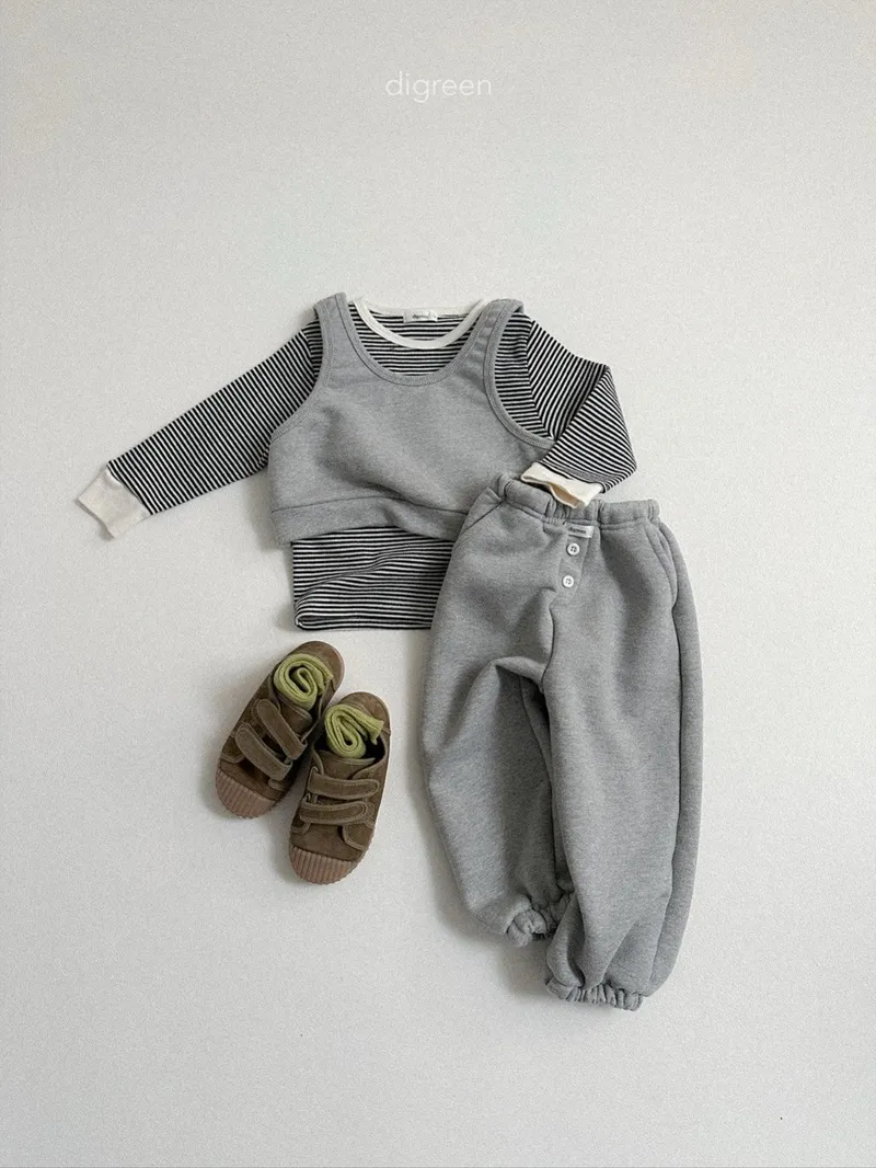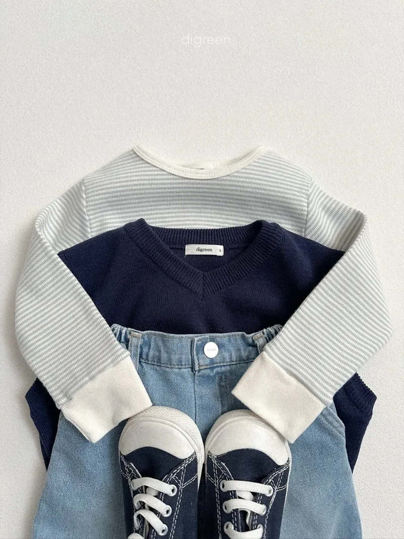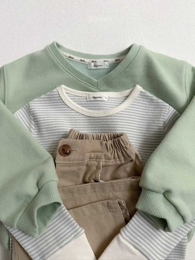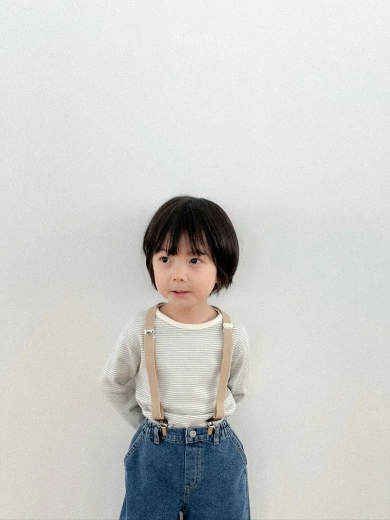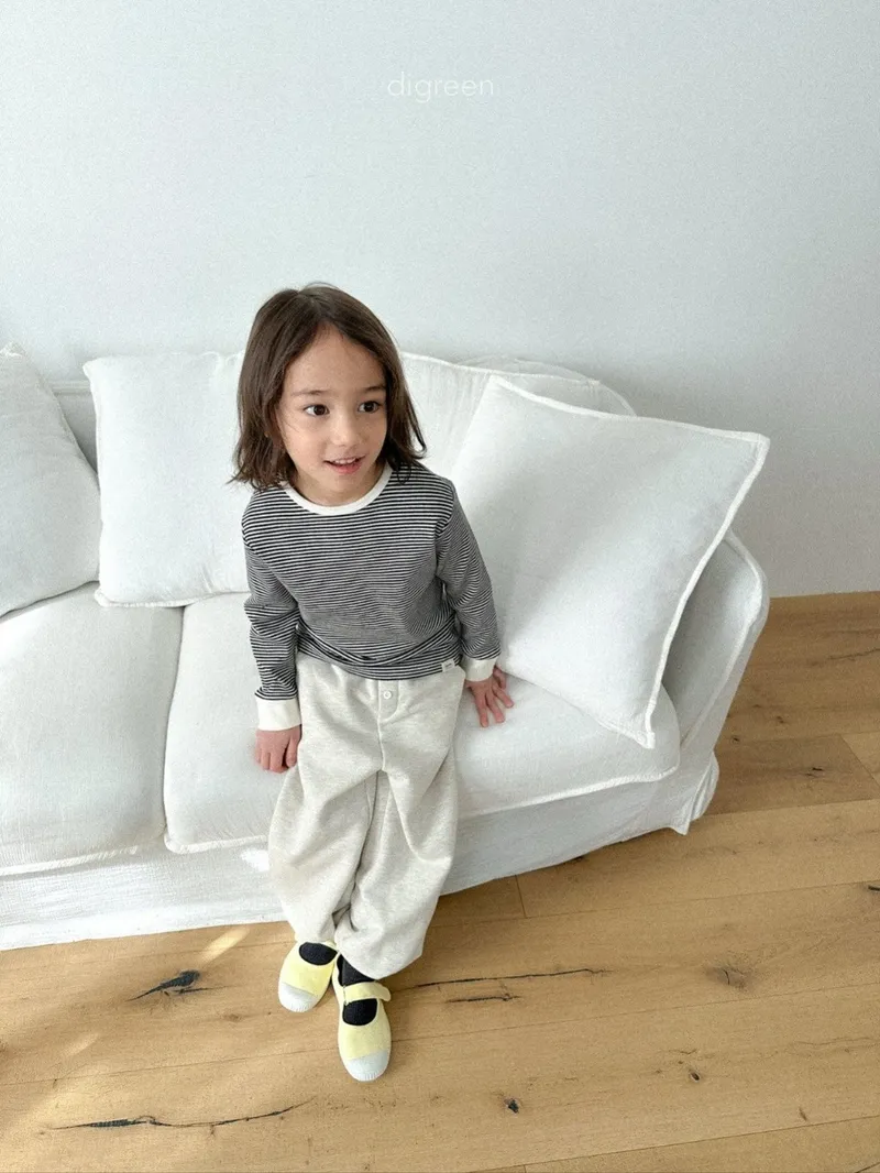 DIGREEN|小熊印花條紋長袖棉tee