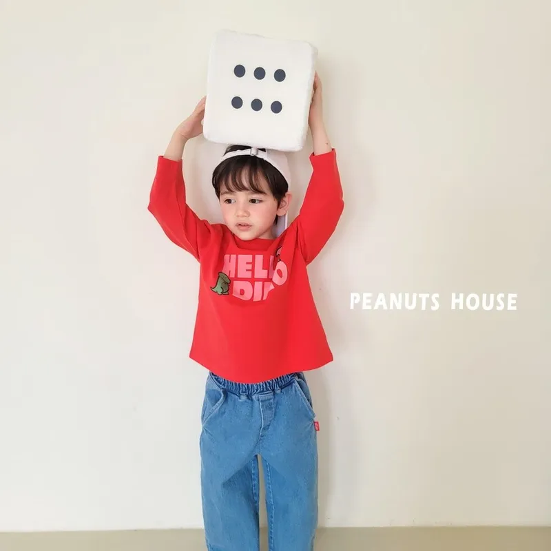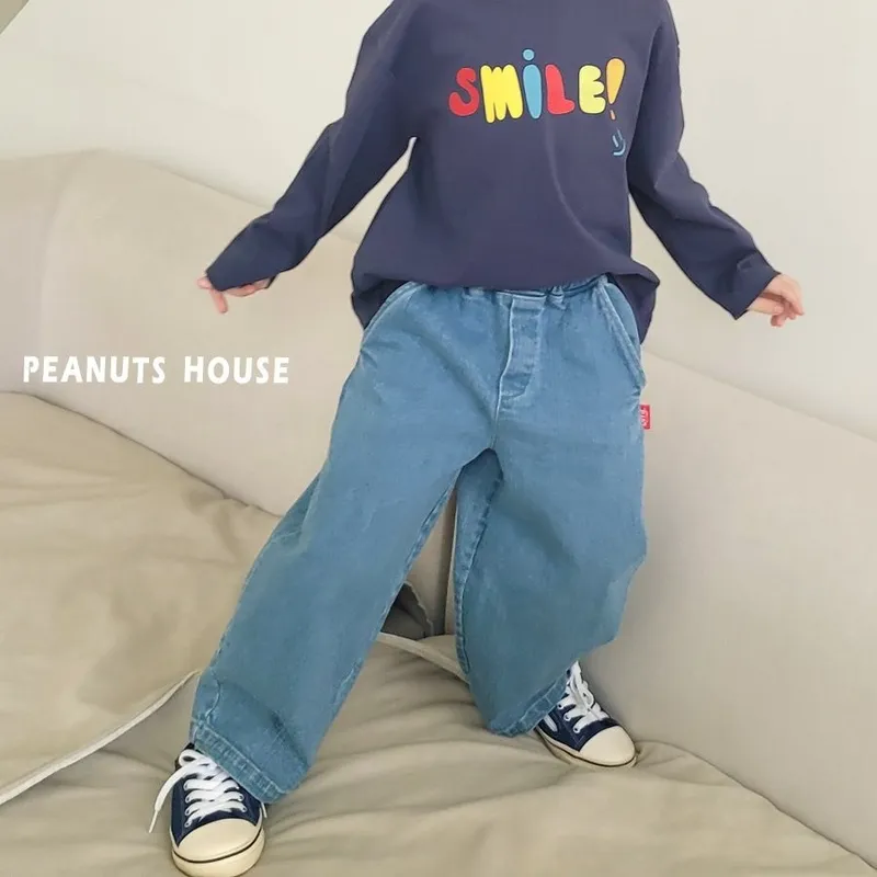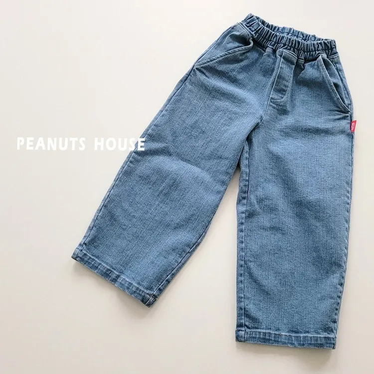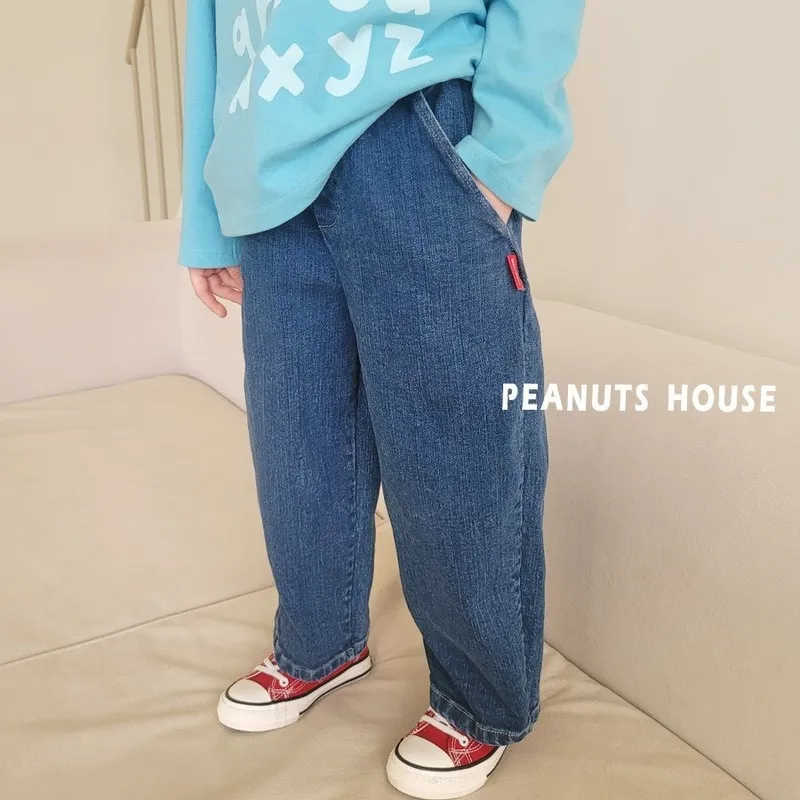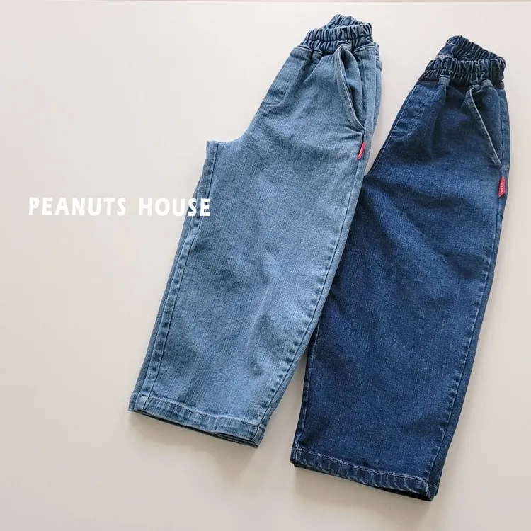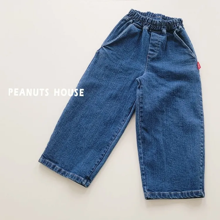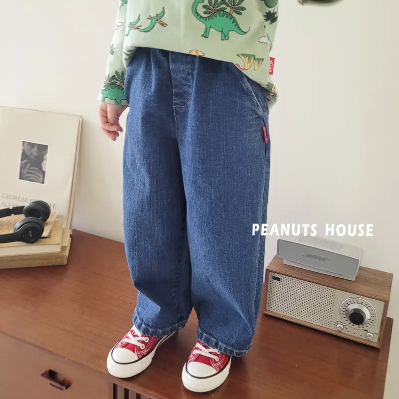 PEANUTS|側邊織標鬆緊直筒牛仔褲