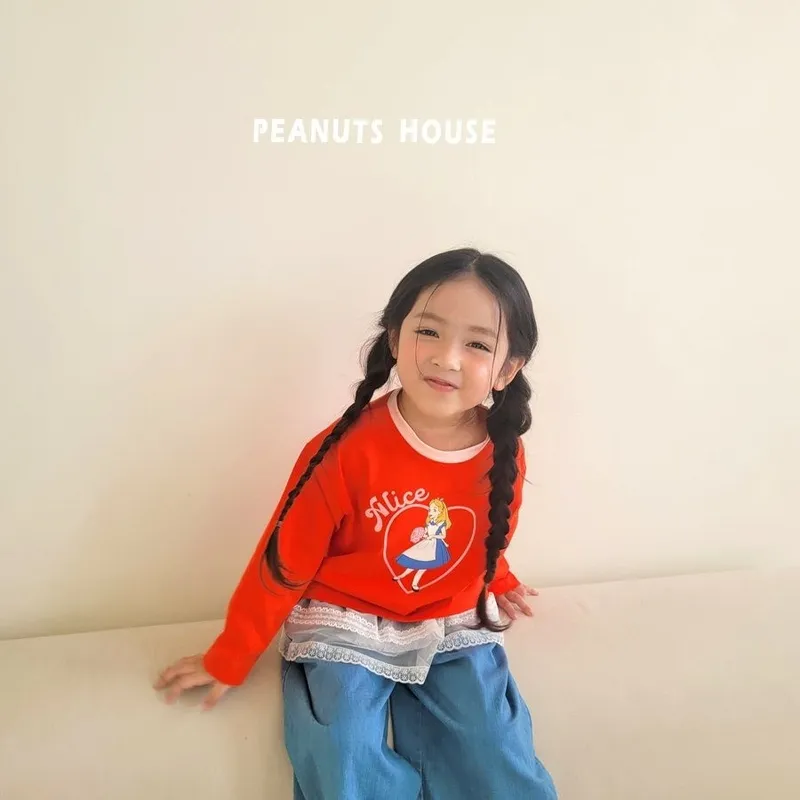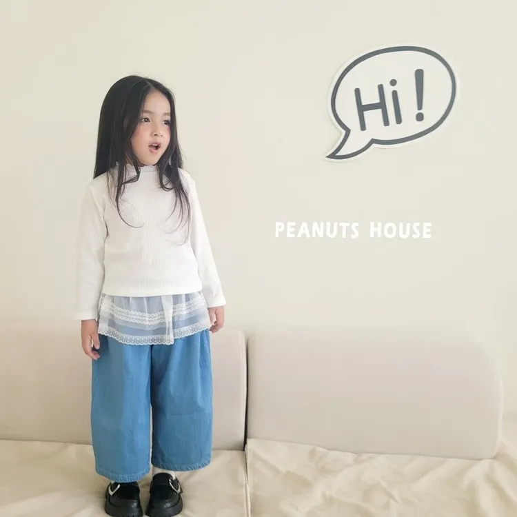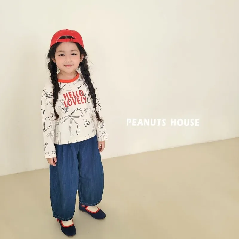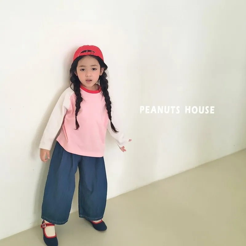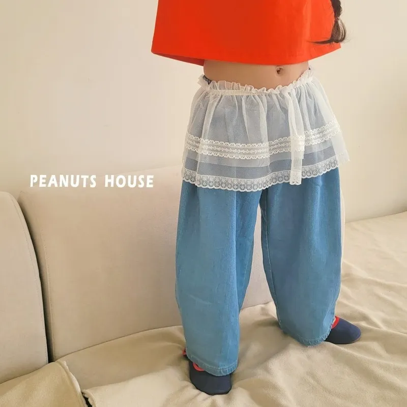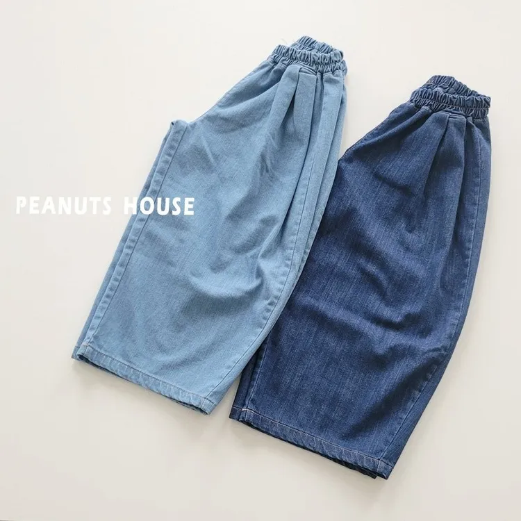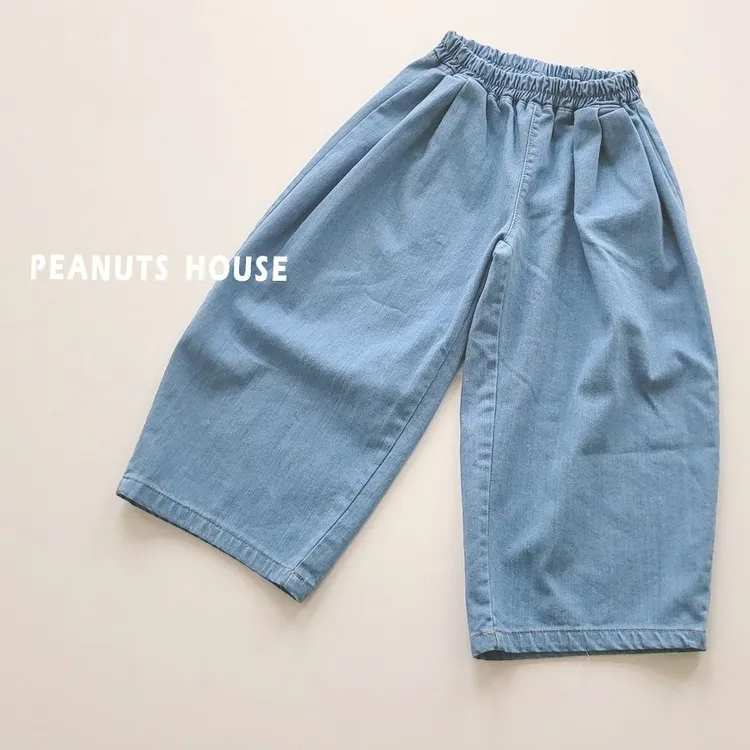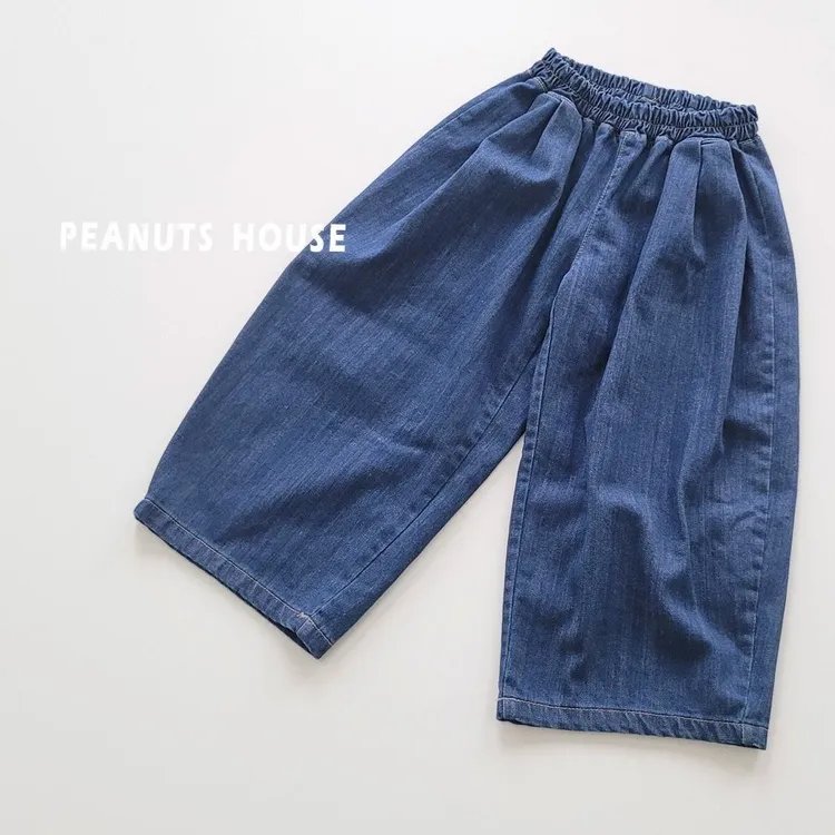 PEANUTS|寬鬆抓皺微闊腿牛仔褲