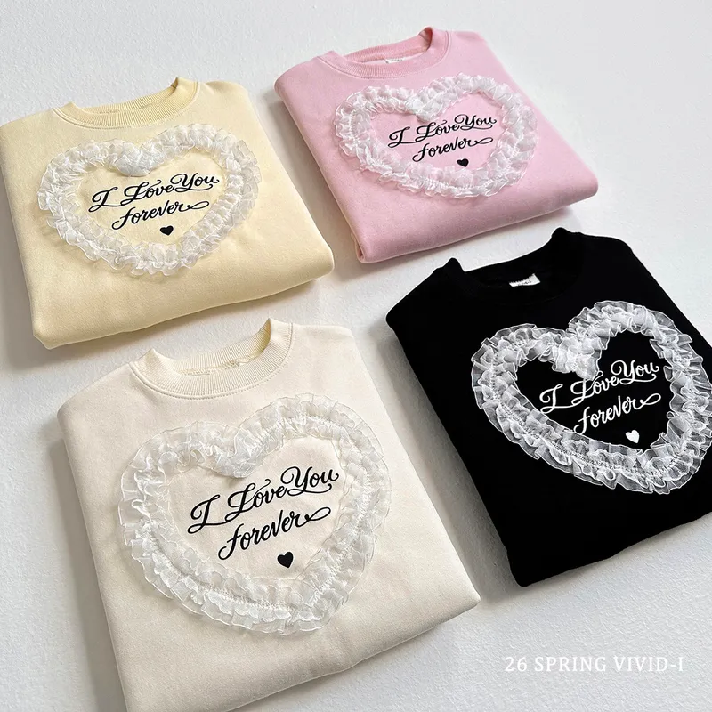 VIVID-I|蕾絲愛心裝飾大學棉tee