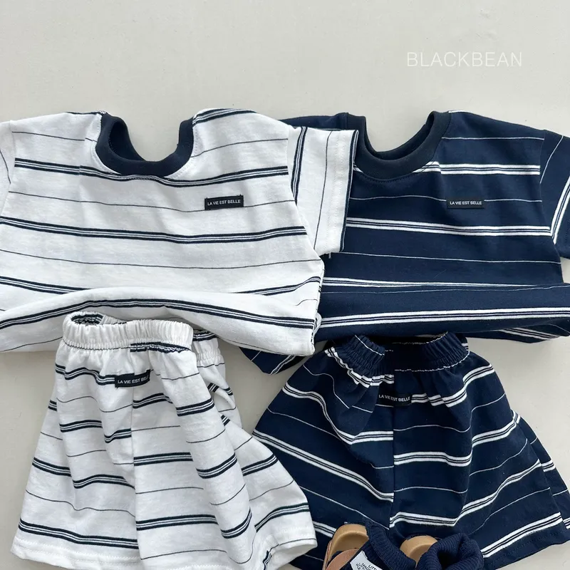BLACK BEAN|橫條紋短袖棉質套裝