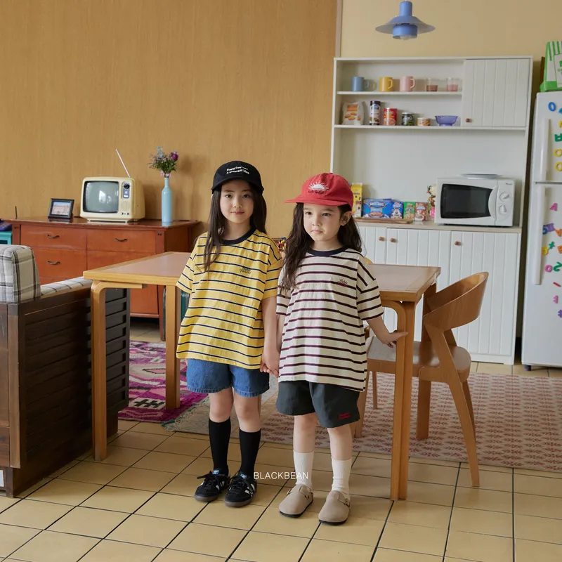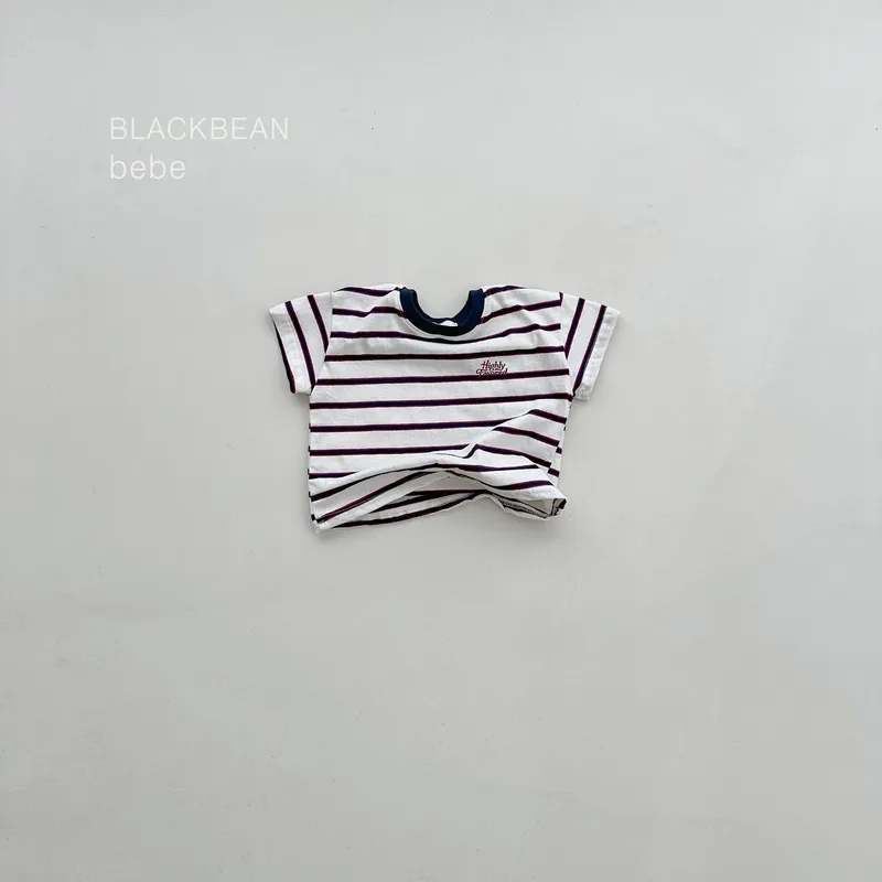 BLACK BEAN|小字標條紋棉質tee