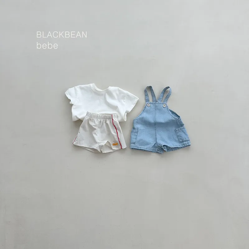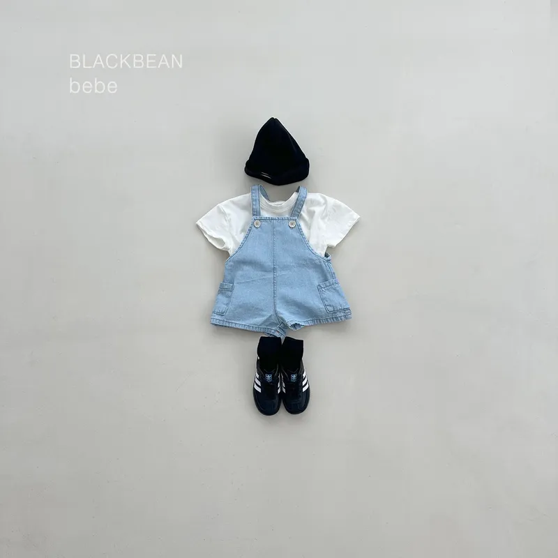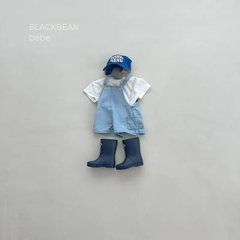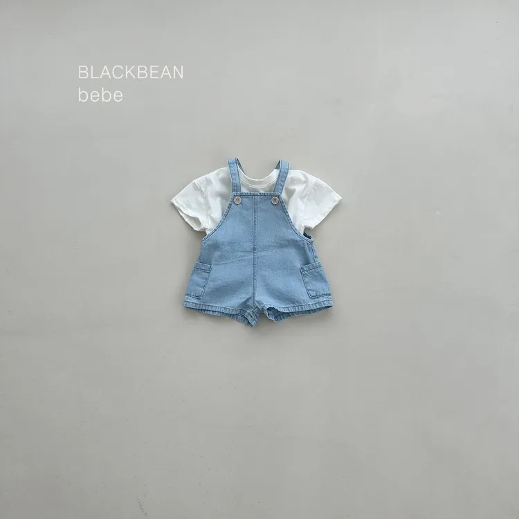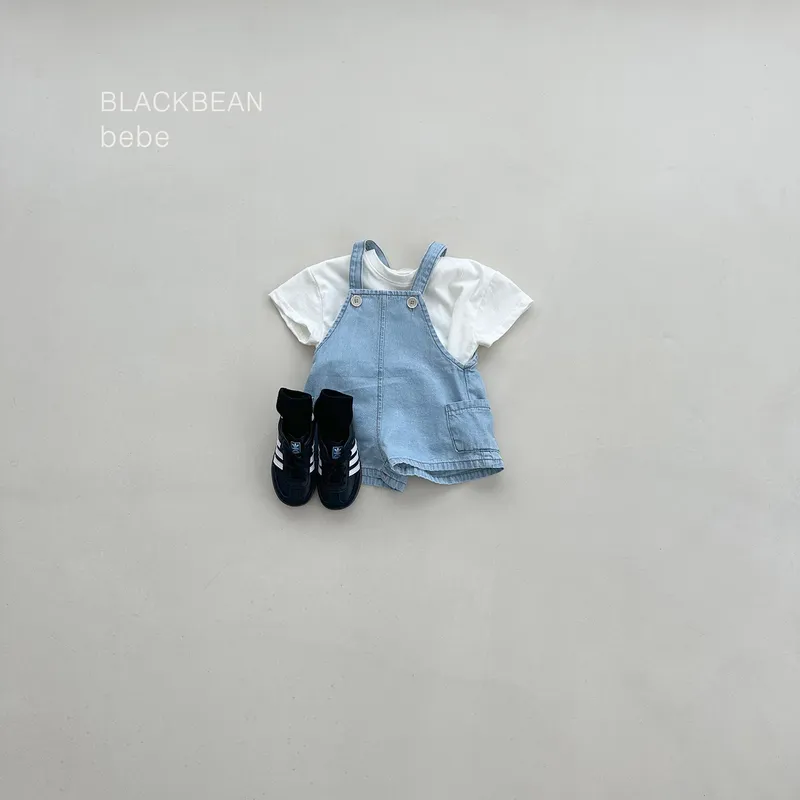 BLACK BEAN|棉質上衣+口袋丹寧吊帶褲套裝