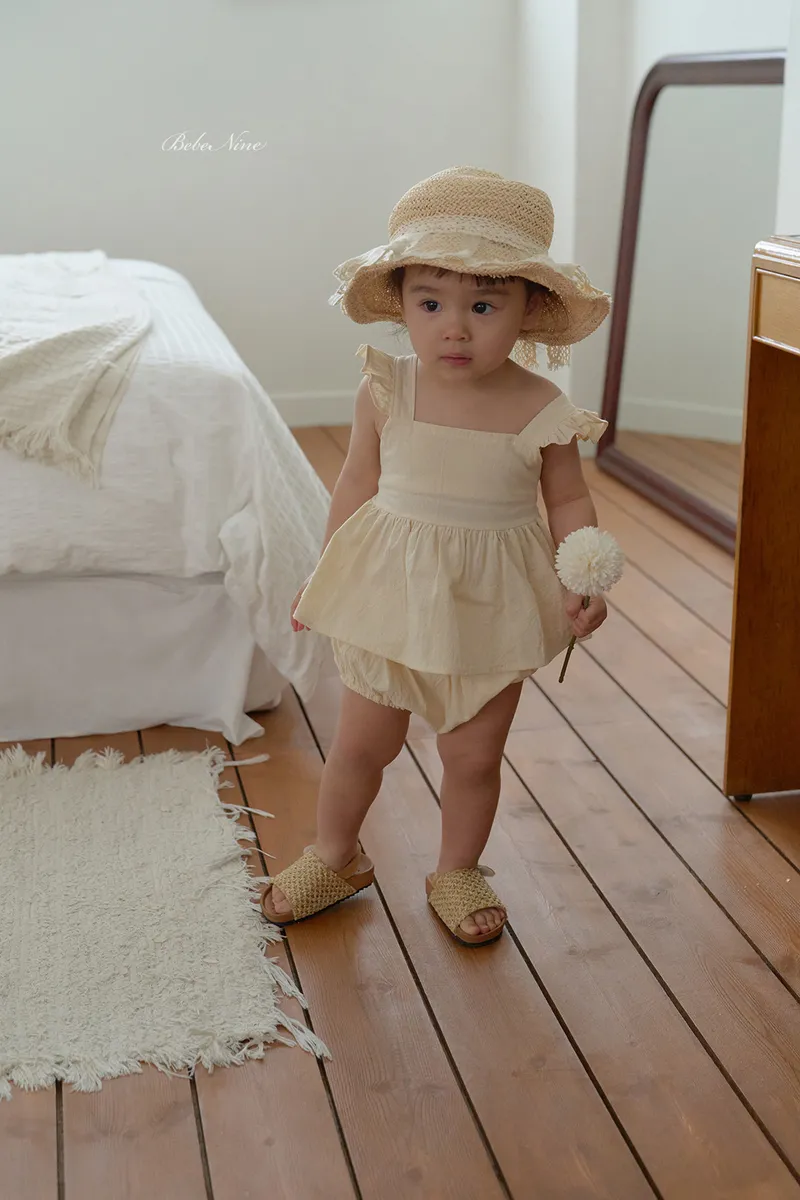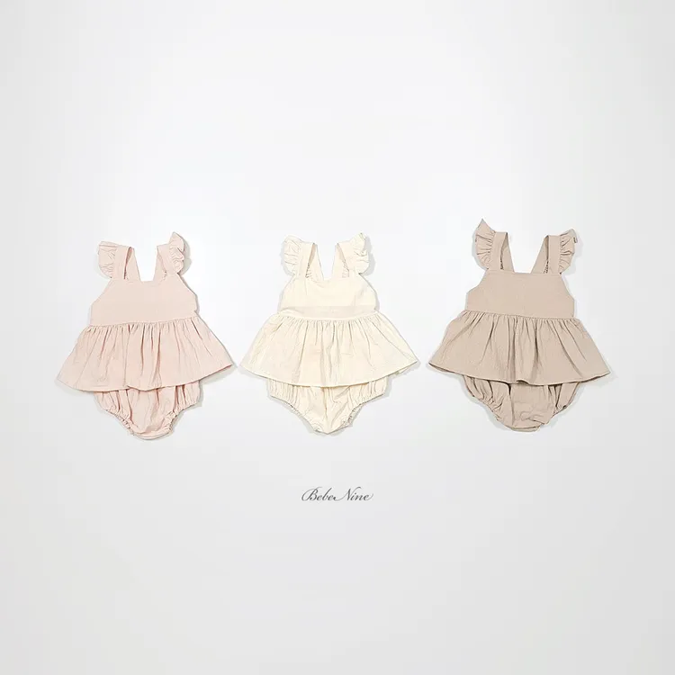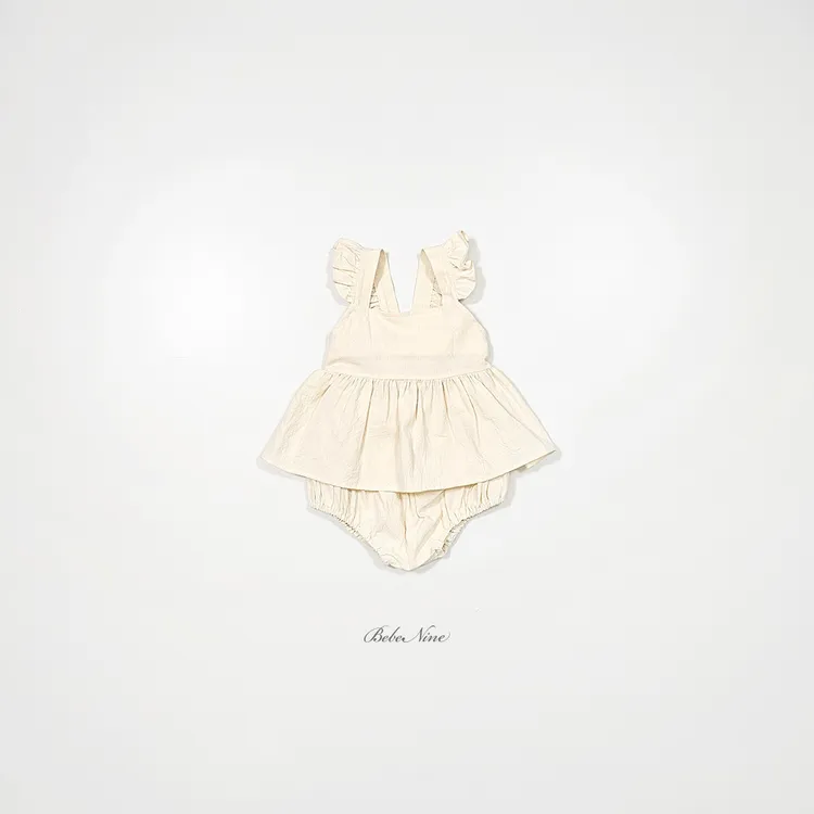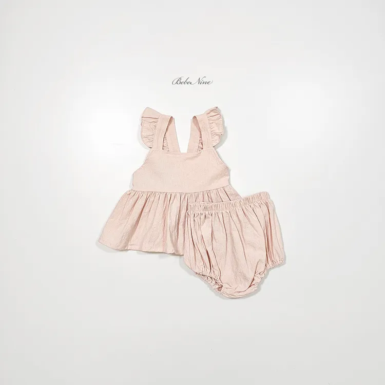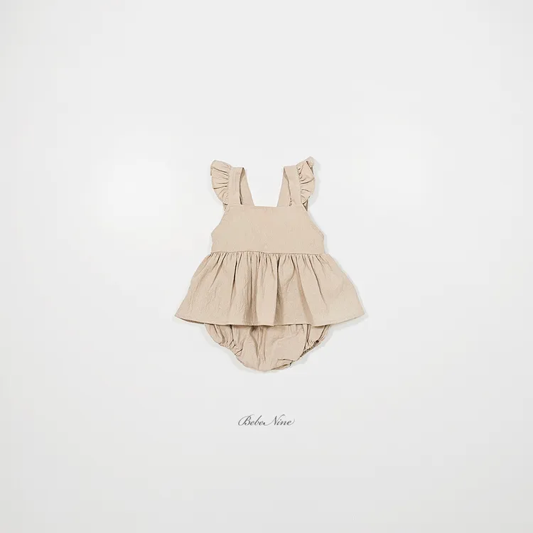 BEBENINE|透氣棉麻荷葉邊屁屁褲套裝