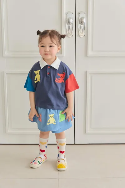 (4/20收單) MIMICO|學院小熊拼色短袖上衣