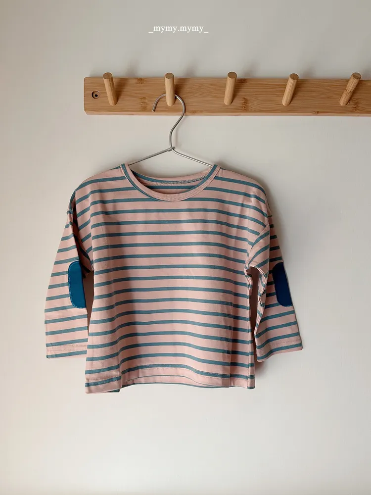 補丁袖撞色條紋薄款上衣